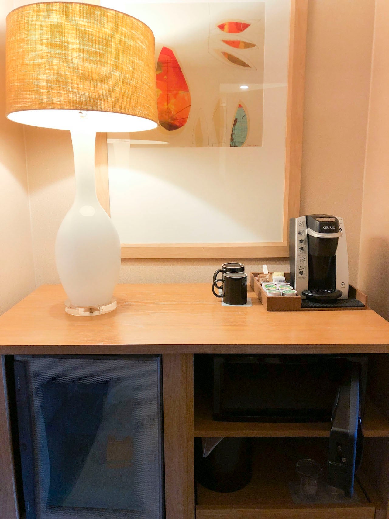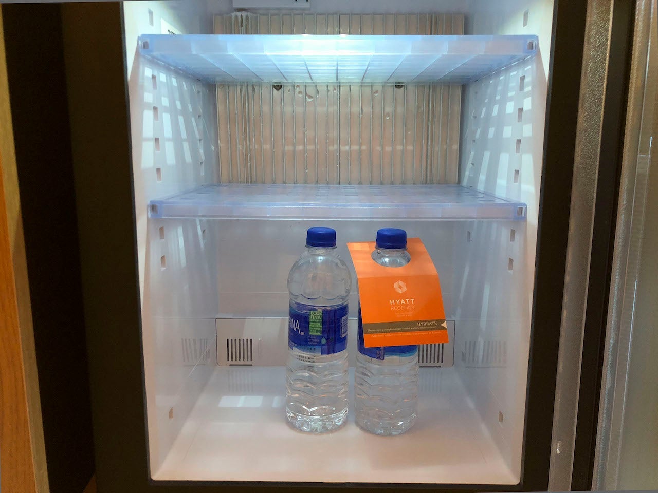 Finally, there was an in-room coffeemaker, as well as a small fridge that was empty other than the requisite two free bottles of water for Hyatt elites.