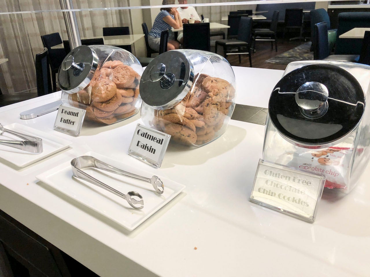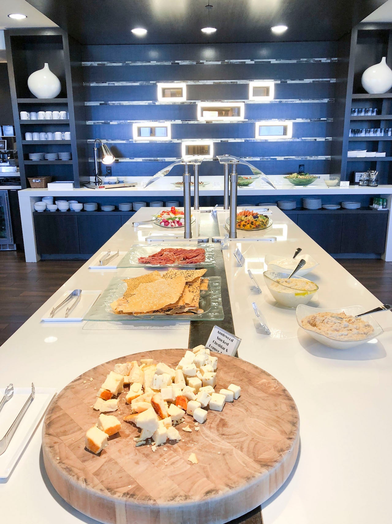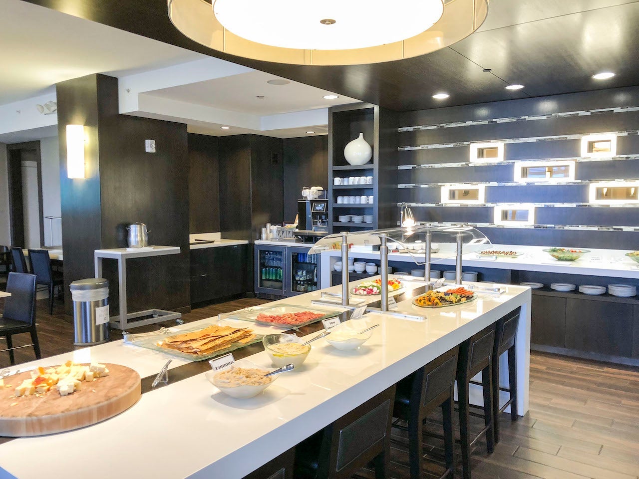 Breakfast was served in the lounge each morning until 10am and included muffins, bagels, salmon, pastries, cereal, fruit, complimentary mimosas and assorted other offerings.