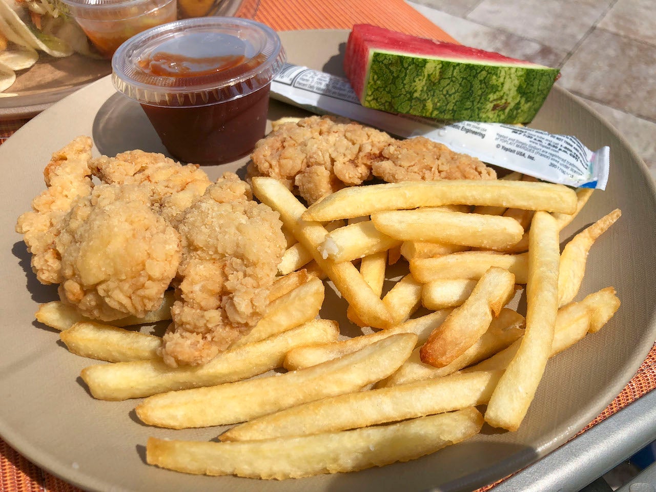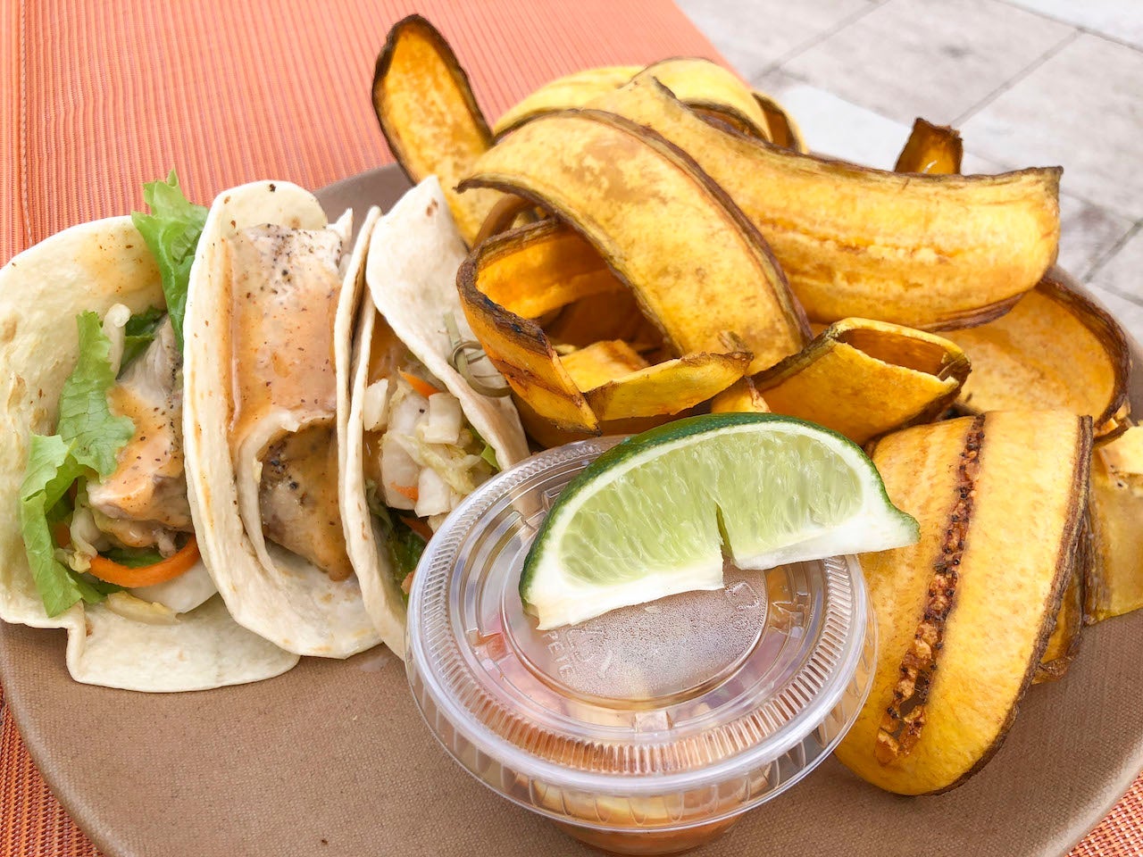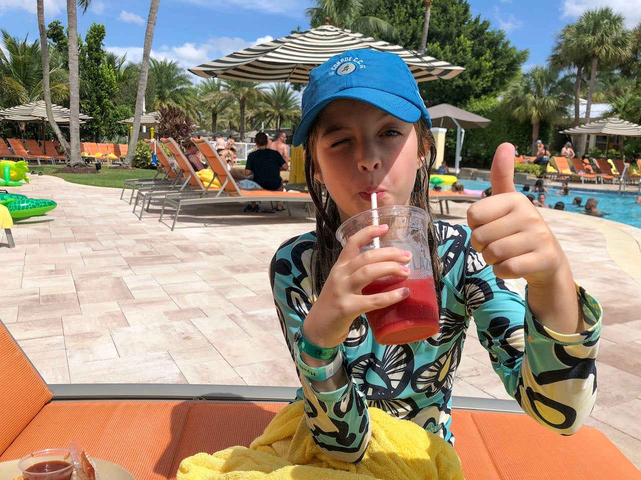 We enjoyed poolside chicken fingers and fries, a child's order of fruit, fish tacos with plantains (skip the tacos, get extra plantains) and a variety of smoothies and other cool beverages.