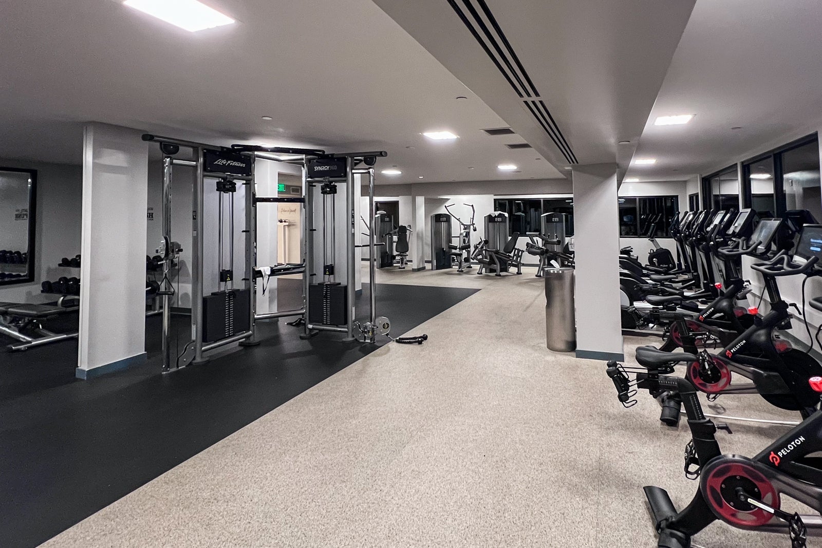 The Hyatt's gym was surprisingly robust for a hotel fitness center and featured plenty of free weights (both barbells and dumbbells), strength training machines, cardio equipment and a stretching area. The gym is in the same building as Spa Adeline, which is upstairs from the fitness area.