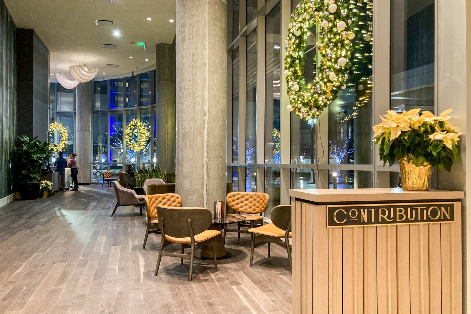 There are multiple options for eating and drinking at the Hyatt Regency Salt Lake City, including Contribution, the bar located just off the lobby. It offers a full range of drinks — from tap beers and wines to cocktails — and light bites.