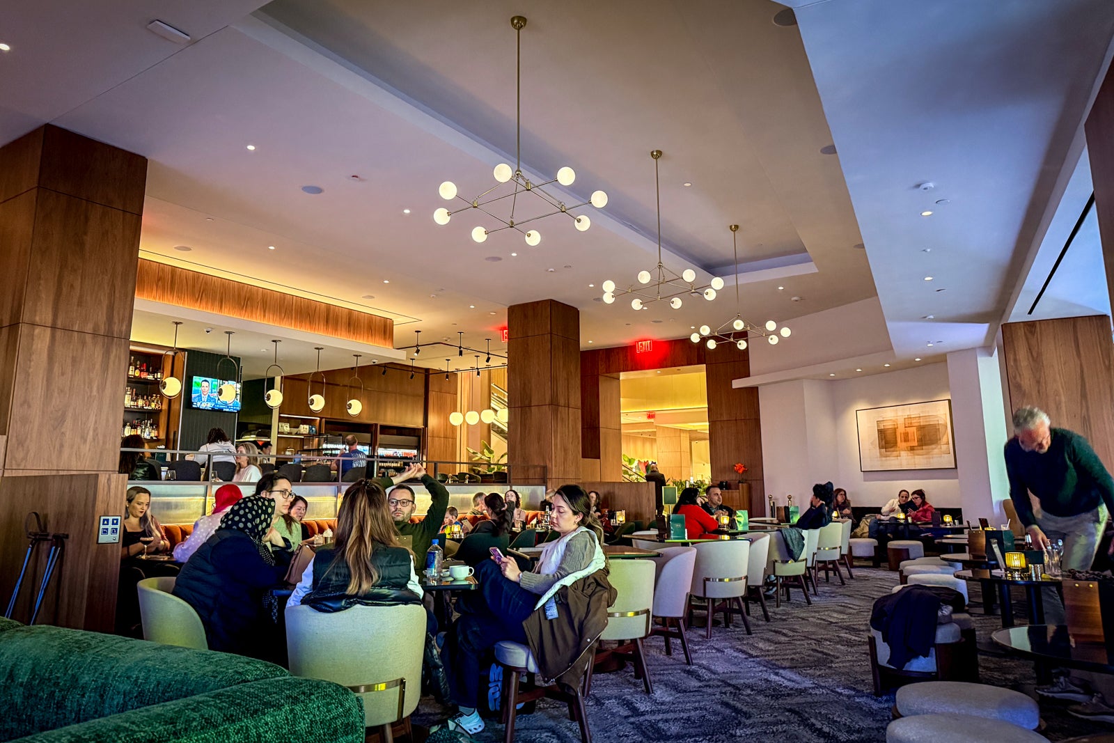 There is a grab-and-go venue and a bar, along with the restaurant, all located in the same area off the lobby.
