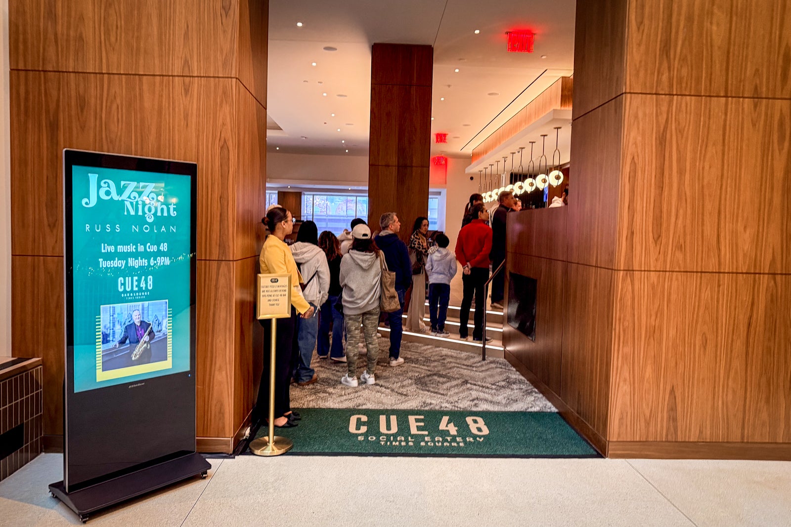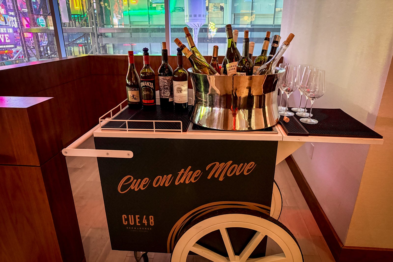 - Cue 48 is now open, serving breakfast, lunch and dinner in the main lobby. Check out the killer views of Times Square.