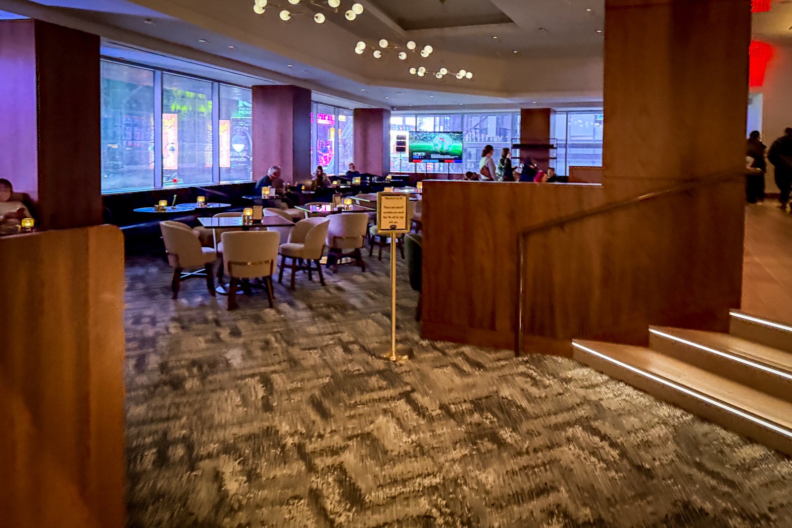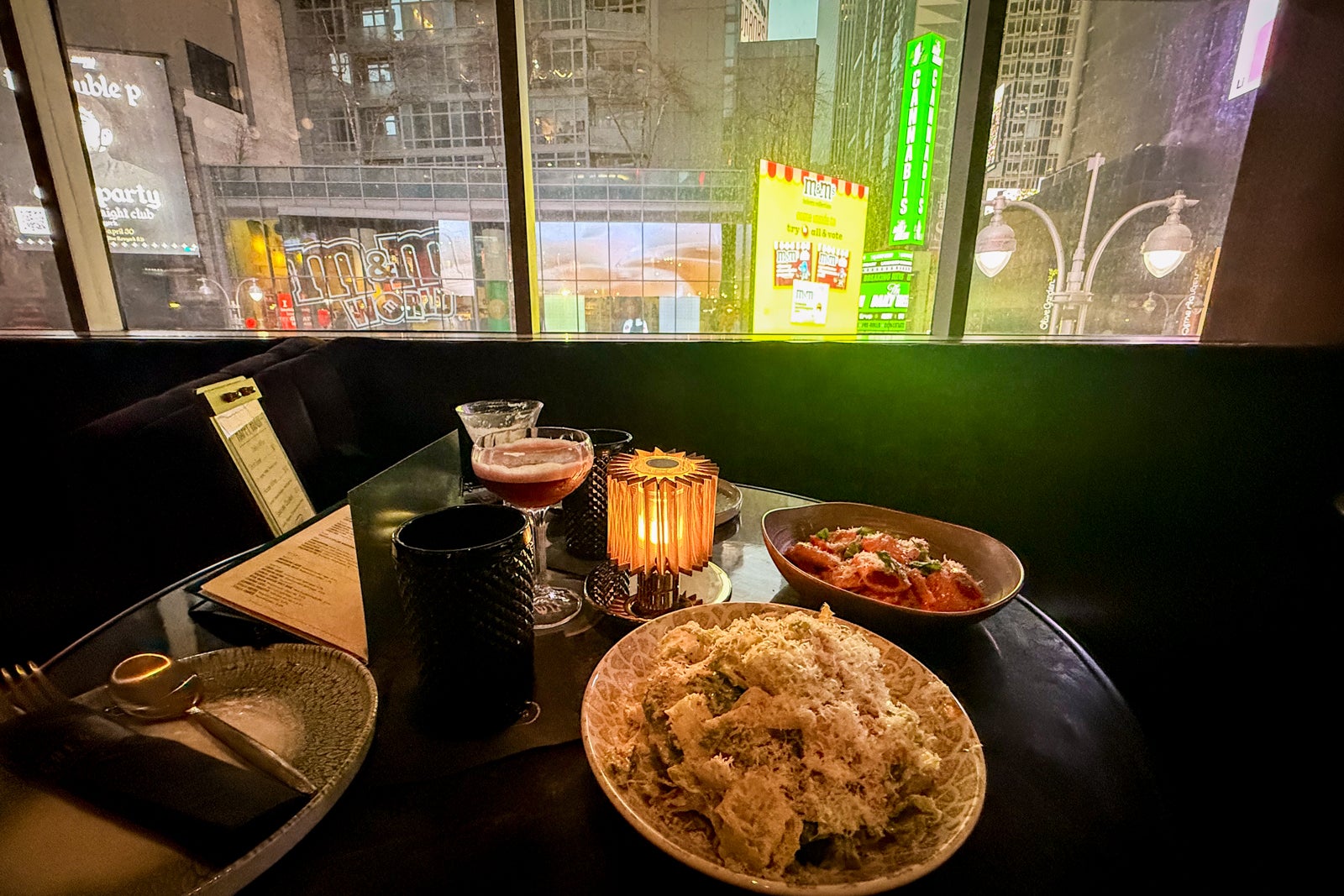 Dinner is served in the main dining area overlooking Times Square, a really fun setting for a casual bite.