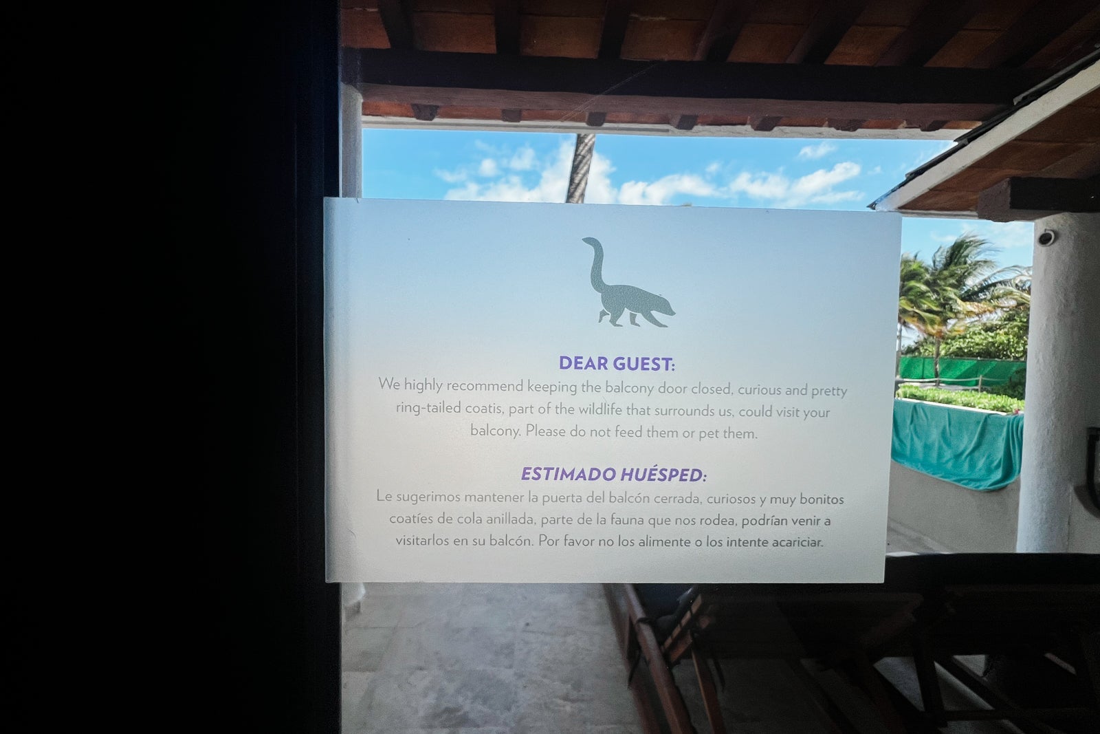One thing to be mindful of, especially for those staying on the resort's ground floor, is that there are long-tailed, raccoon-like animals known as coatis that will open the back door of your room and rummage through your stuff, looking for food. There is a sign at the back door to always keep your doors locked, especially at night. Luckily, I did not have a run-in with any coatis in my room, but neighboring hotel guests did.