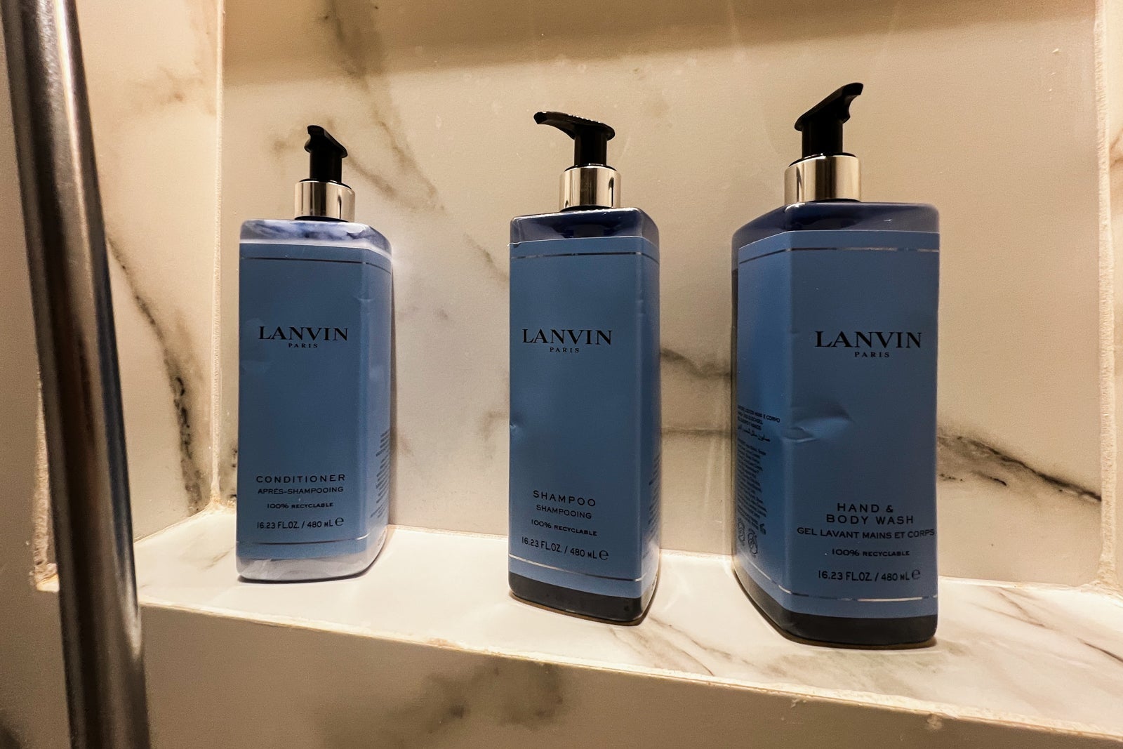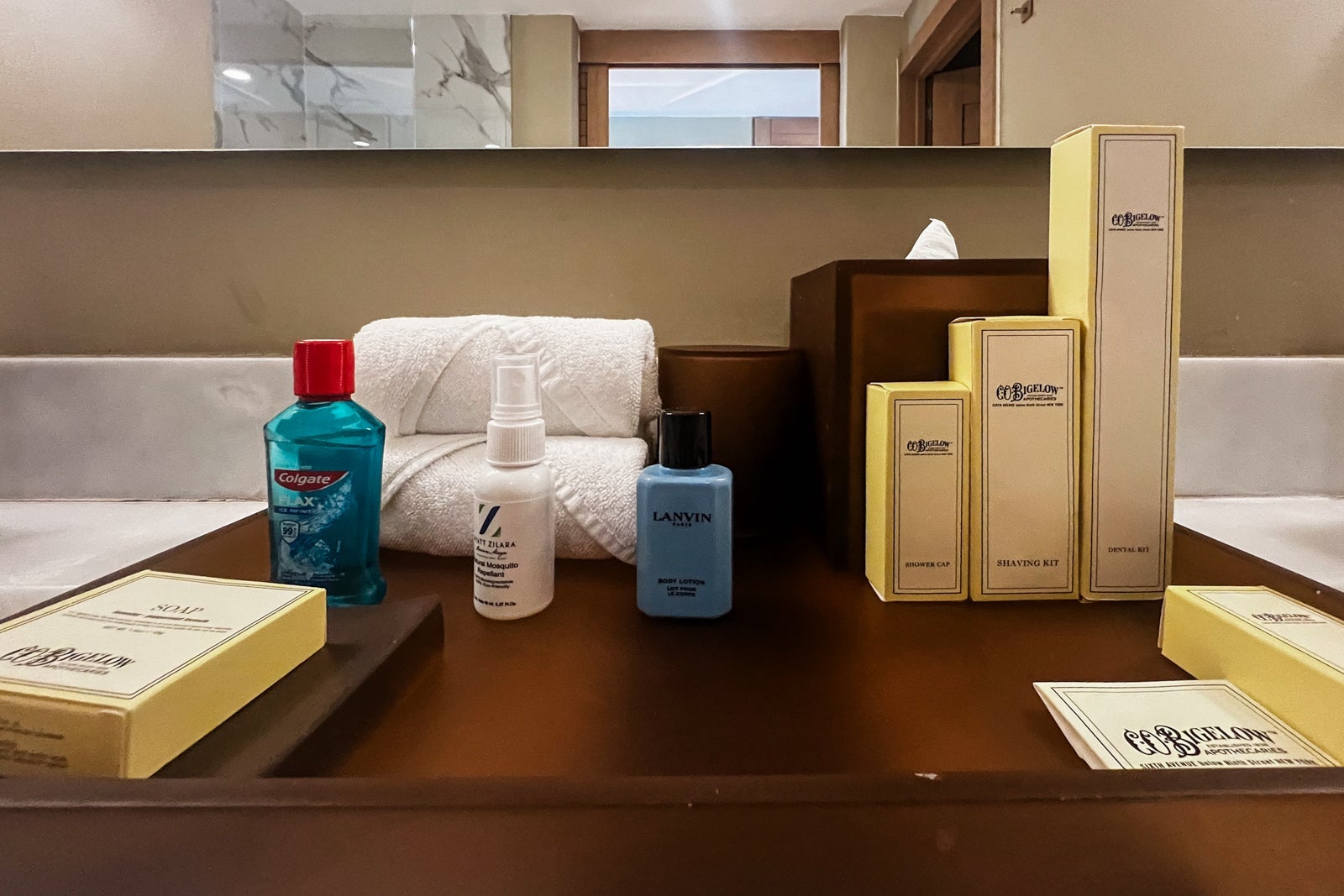 This room featured a full-size rainfall shower and Lanvin Paris bathroom essentials (shampoo, conditioner and body wash). Other notable bathroom amenities include bug spray, mouthwash and C.O. Bigelow dental and shaving kits.