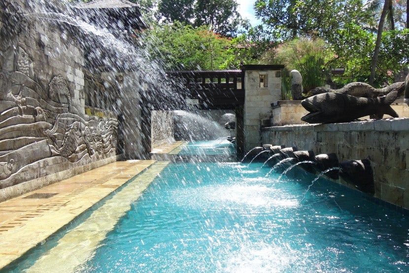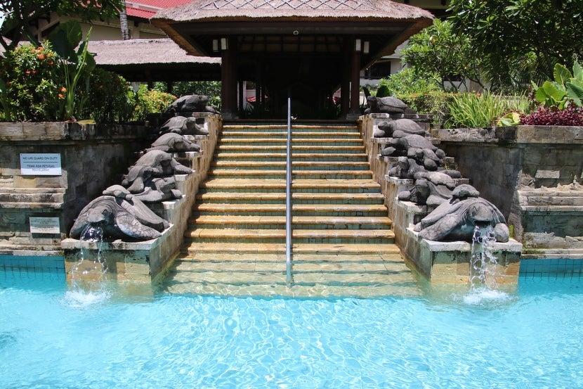 It's obvious that whoever designed this resort had a lot of fun doing it — and no place is that more evident than the pools and water fountains, which are similar to what you'd see in a Balinese family compound or even at the sacred Hindu water temple of Tirta Empul, but taken to an opulent extreme. The main pool is huge and features the ever-important swim-up bar.