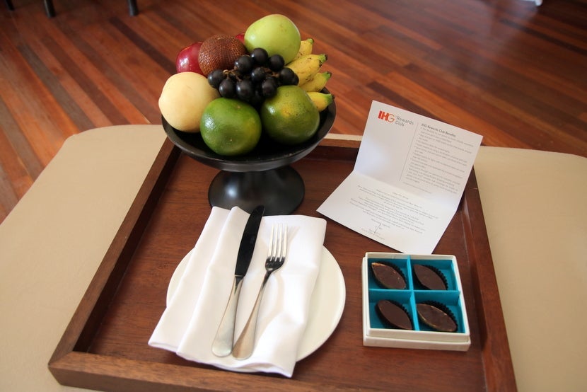 Since I'm an IHG Platinum, I received a welcome gift of a fruit plate and chocolates, along with a personalized note.