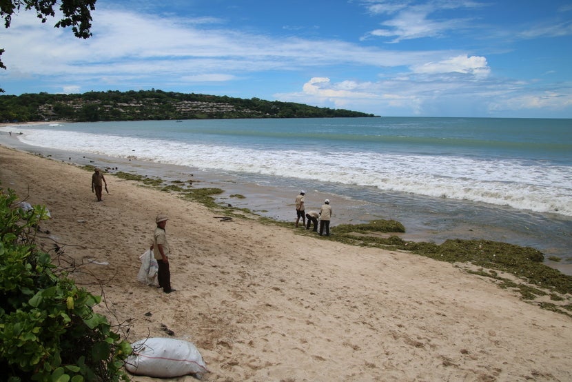 The water in the bay isn't the cleanest, although I heard it was worse because it was during the rainy season. I'd recommended bringing along water shoes if you want to go in the ocean because the jagged rocky bottoms can be quite rough on your feet. Occasionally, strange things, like large bushels of grass, would wash ashore. The staff were always very quick to pick it all up and keep the beach clean though.