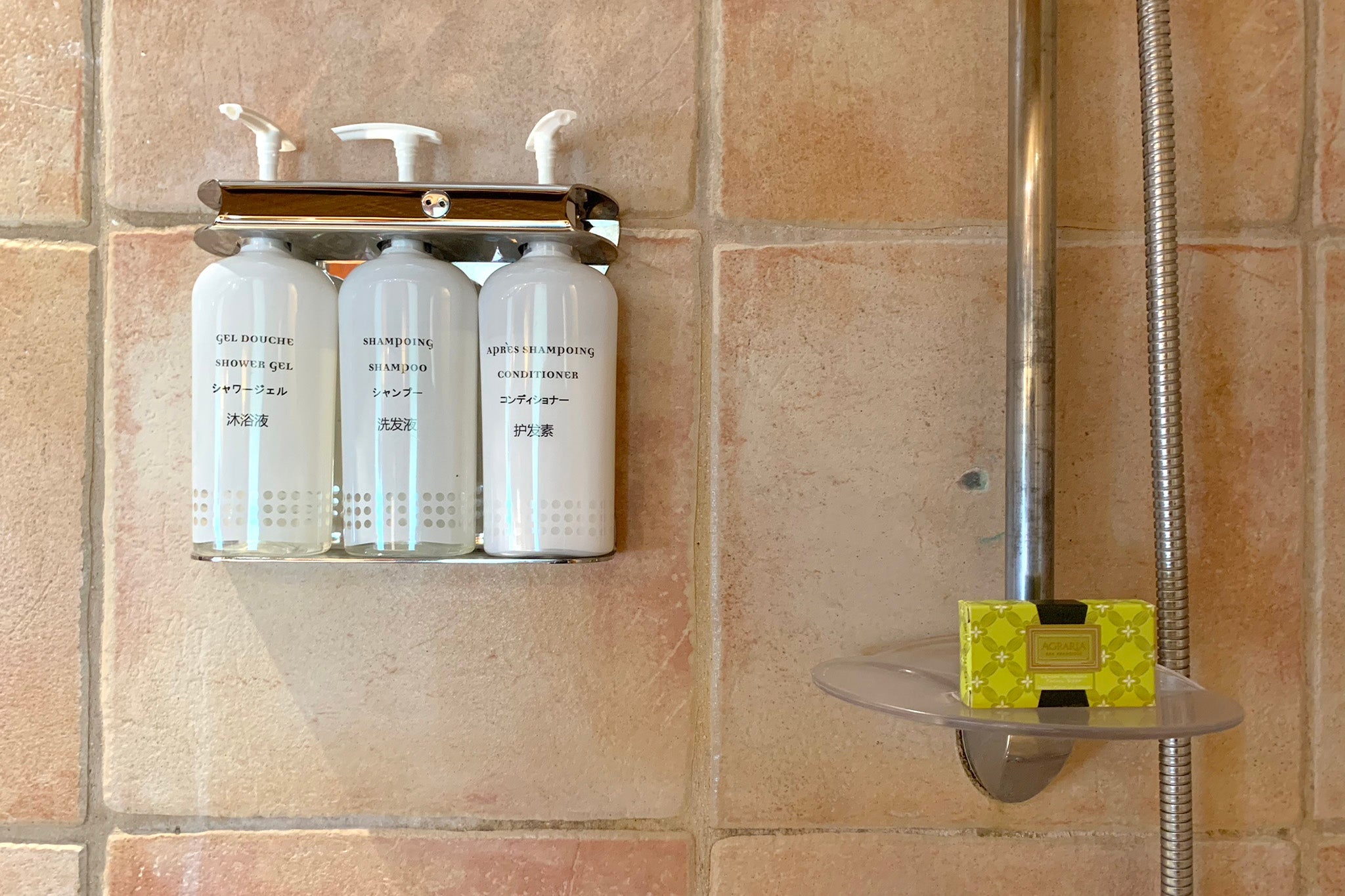 There weren't many bathroom amenities to speak of. Shower gel, shampoo and conditioner were mounted (and locked) in the shower, which, while environmentally friendly, felt exceptionally cheap.