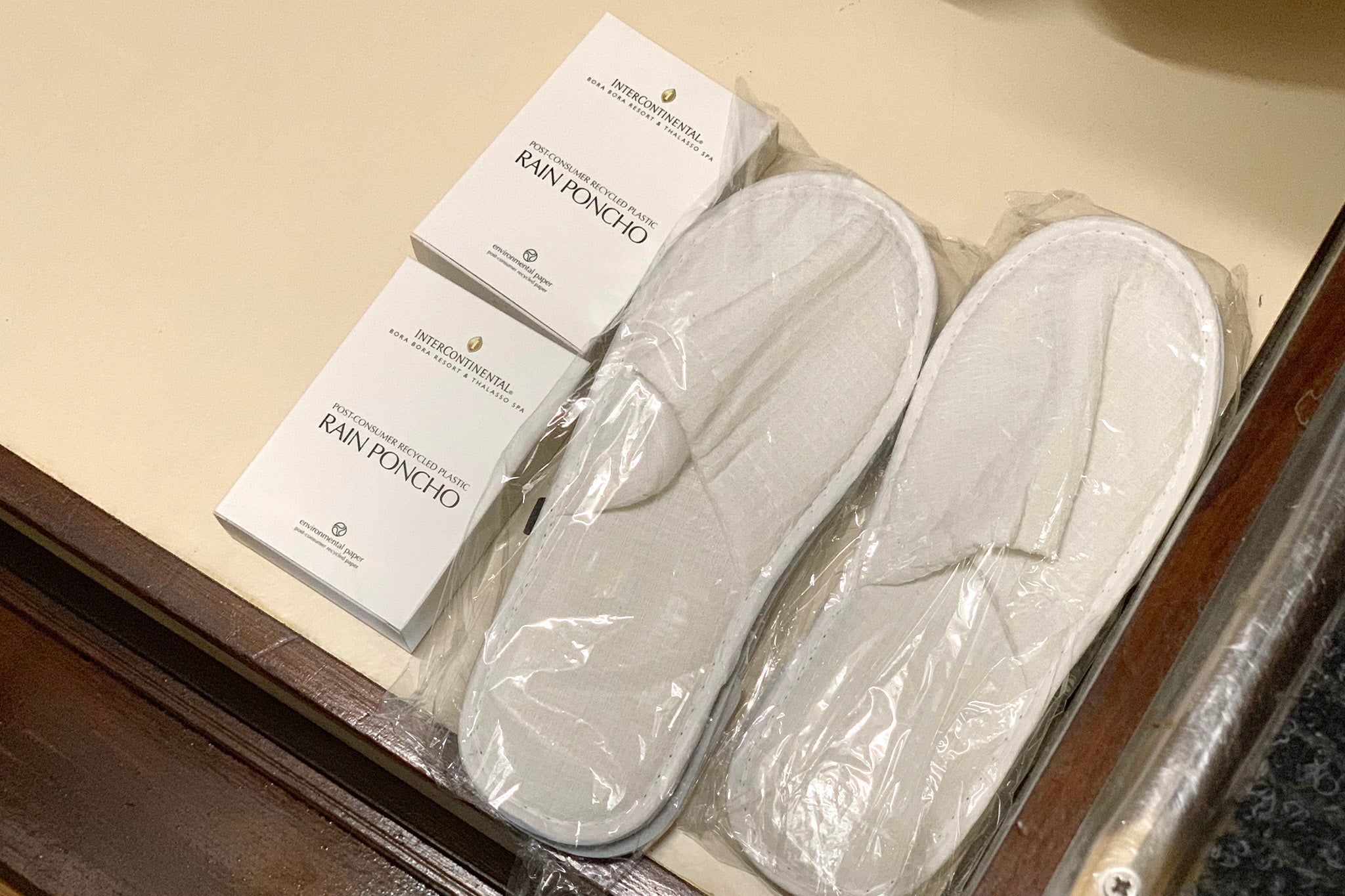 There were also cheap disposable slippers, along with two rain ponchos. You'd probably get some use out of those, given that this part of the island seemed to be especially susceptible to rain.