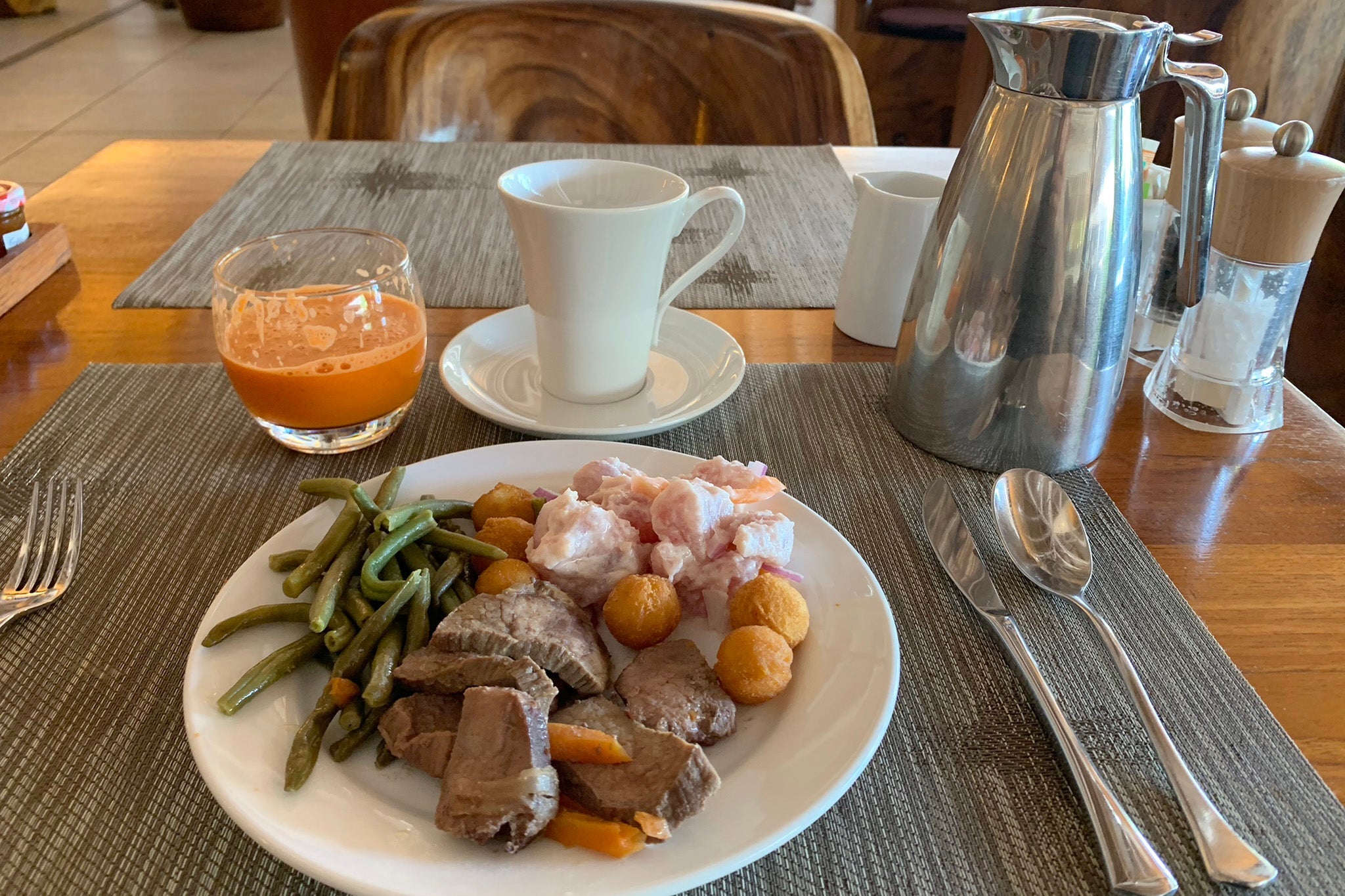 I paired my tuna with sliced steak, green beans and fresh-squeezed carrot juice, along with a pot of coffee. Everything was quite tasty.