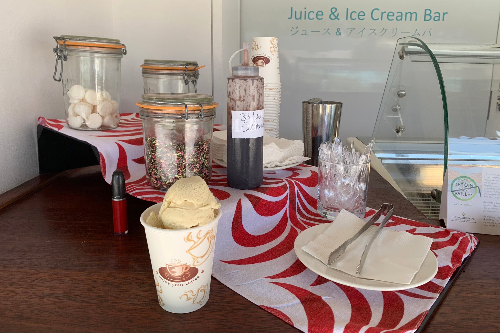 Later in my stay, I decided to order ice cream by the pool — at roughly $11 per cup, it was a pricey treat, but at least the toppings came free.