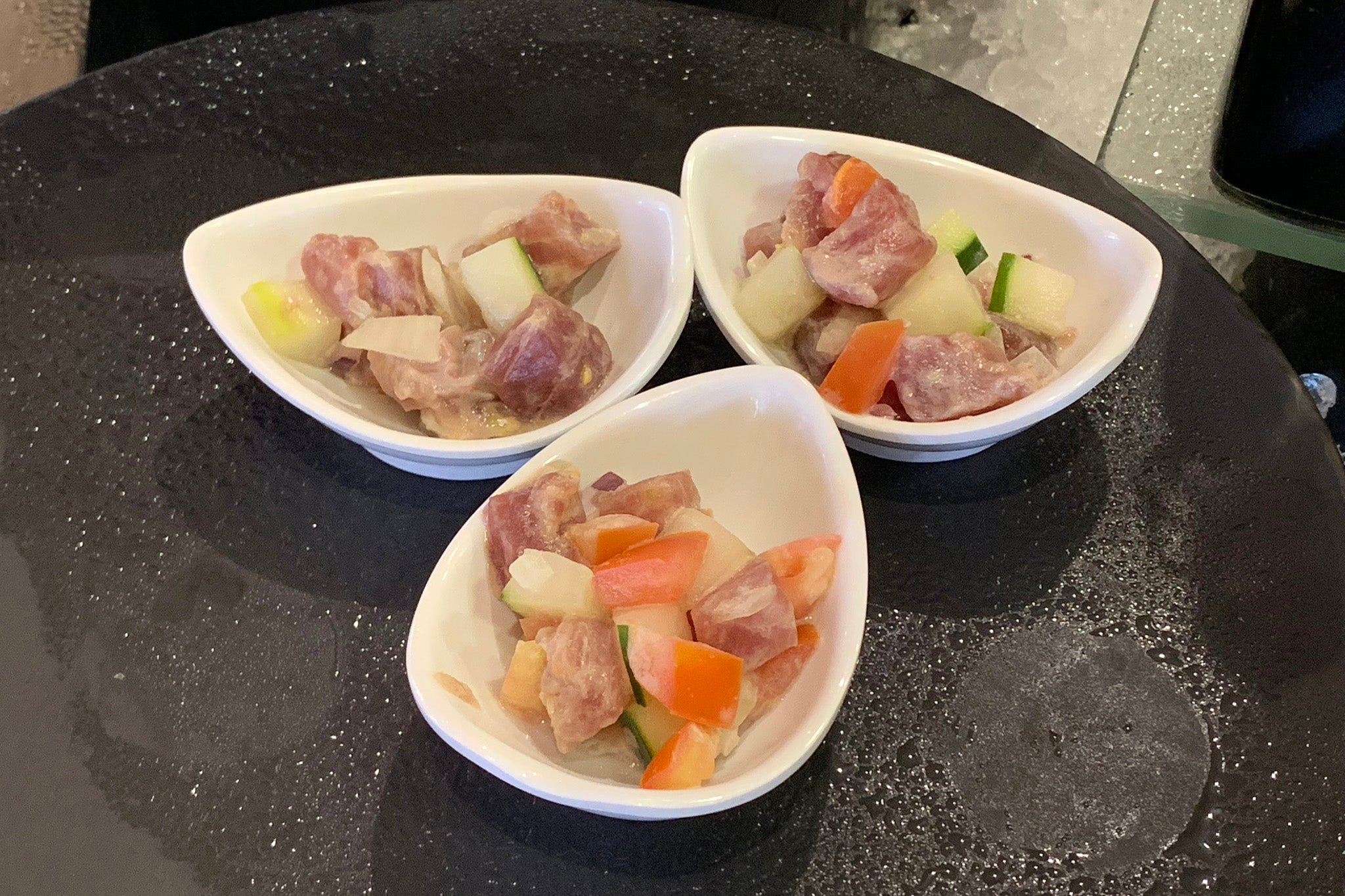 Just a few cups of poisson cru. While I went back for seconds (and thirds) at Thalasso, I barely managed to eat a few pieces at Le Moana.