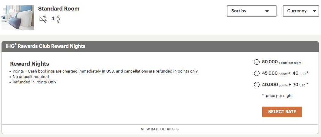 Award rates were available for 50,000 points or various cash-and-points options that ranged down to 40,000 points plus $70. None of those got me a value anywhere near TPG's valuations, so I decided to save my points for more expensive stays.