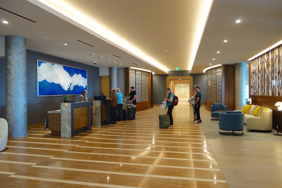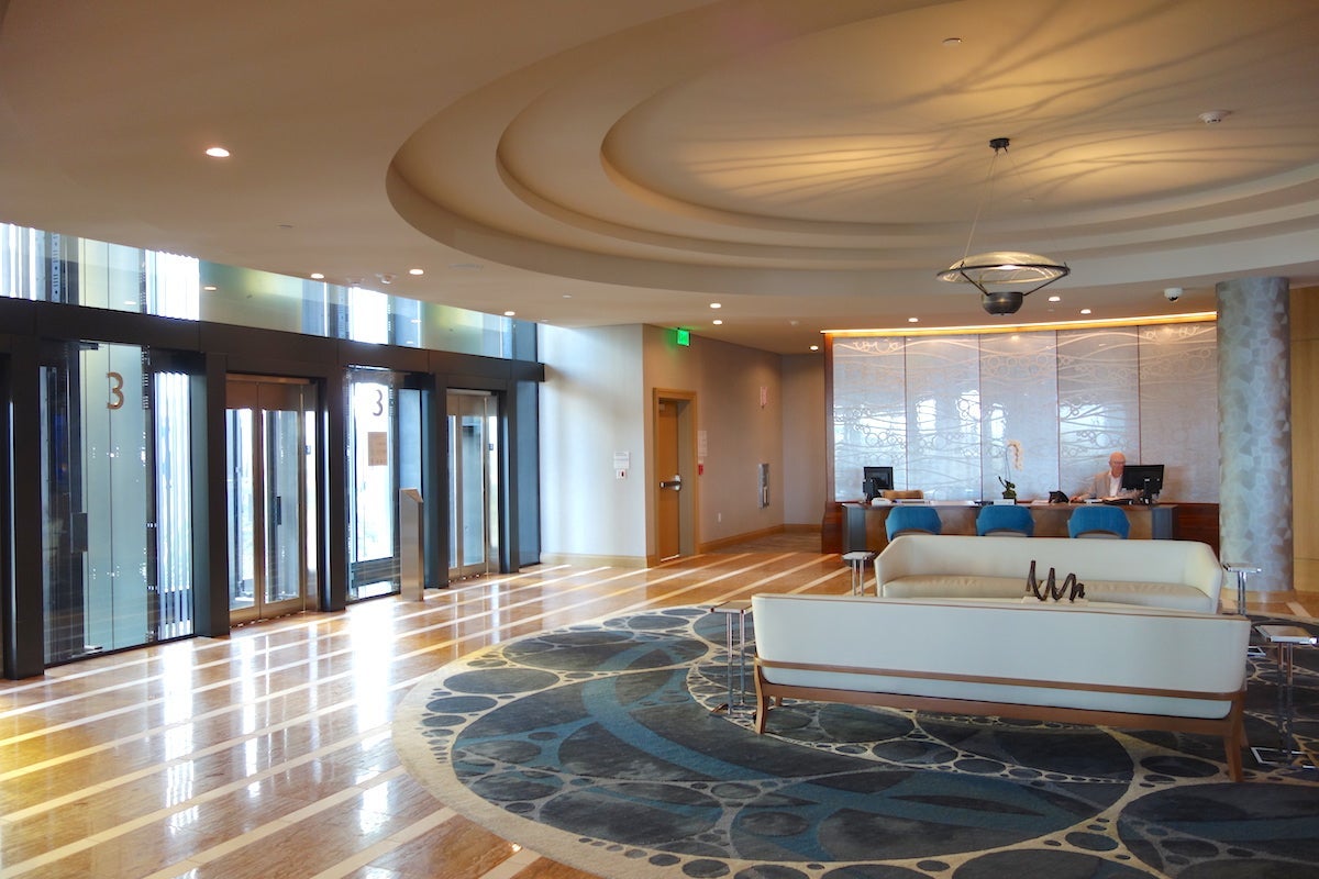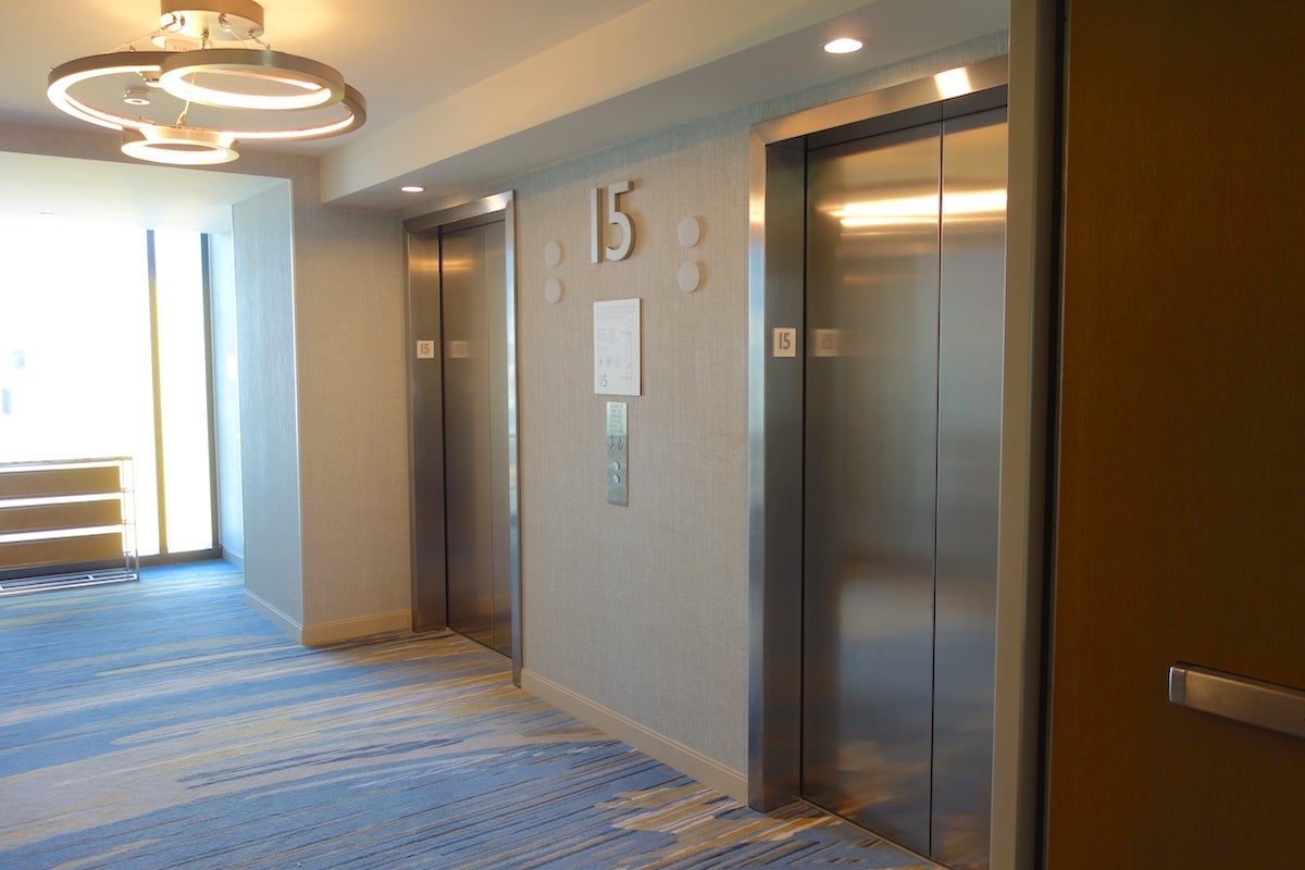 The elevators to the guest rooms were beyond the reception desks in the hotel's main tower and required a keycard to access guest floors.