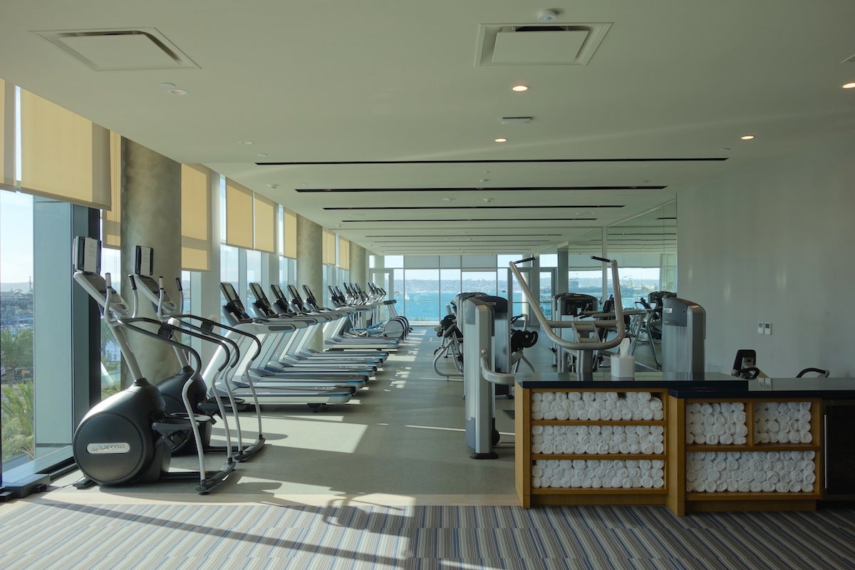 Guests could grab towels and chilled bottles of Evian from a refrigerator near the entrance, though I did not see any gym attendants there throughout the Saturday afternoon that I was passing through.