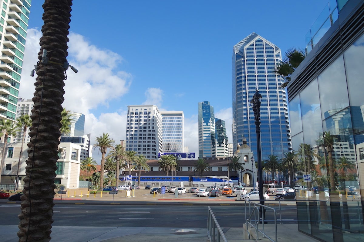 The hotel was right in the heart of downtown San Diego. It was a 10-minute drive to the airport and just across the street from the Santa Fe Depot on one side and the San Diego Bay on the other.