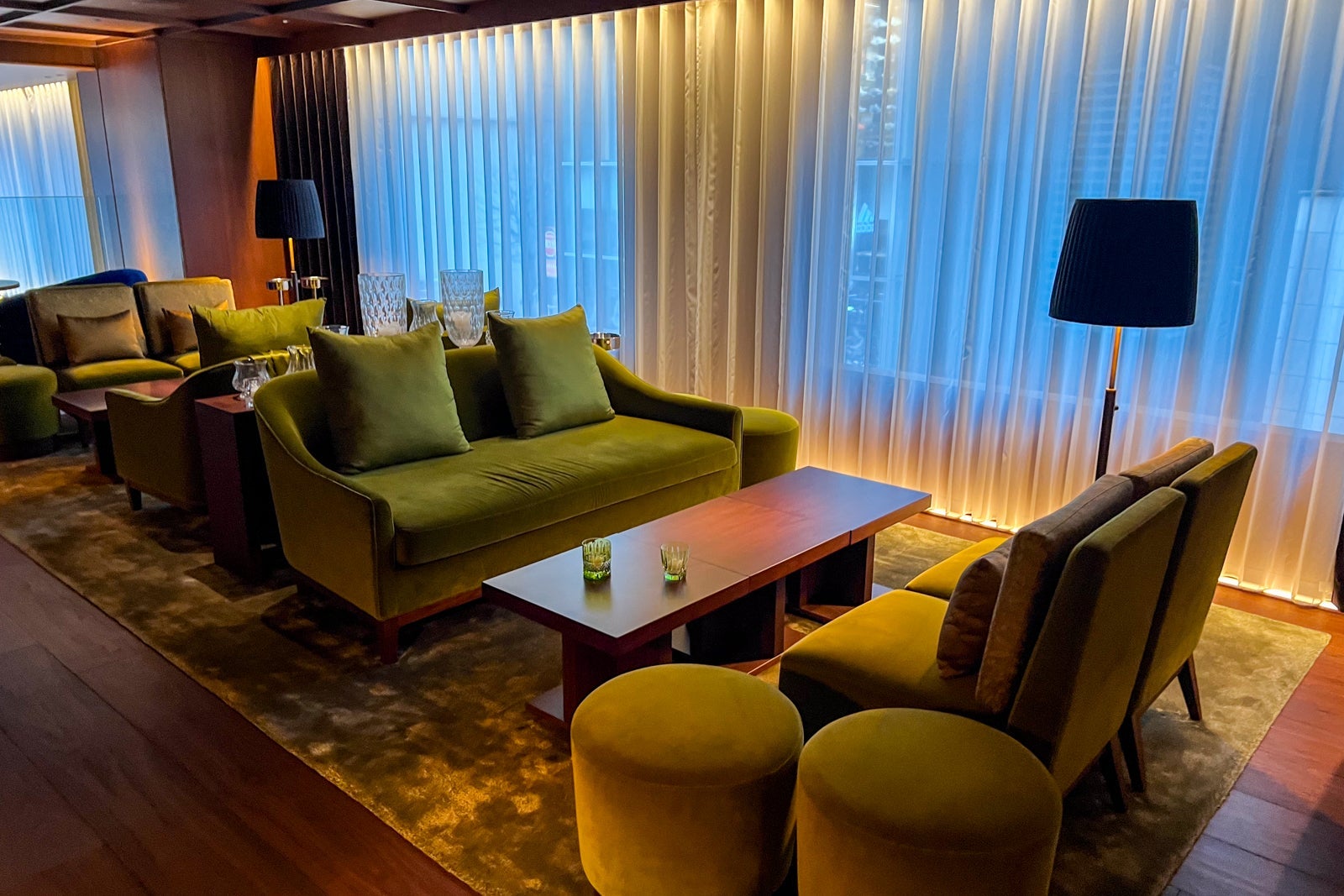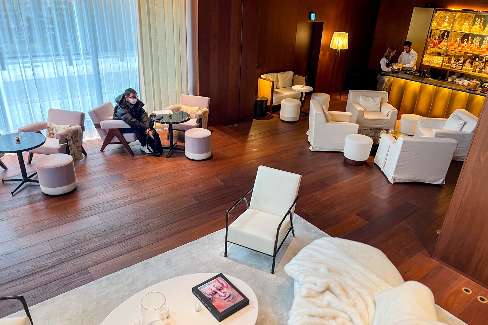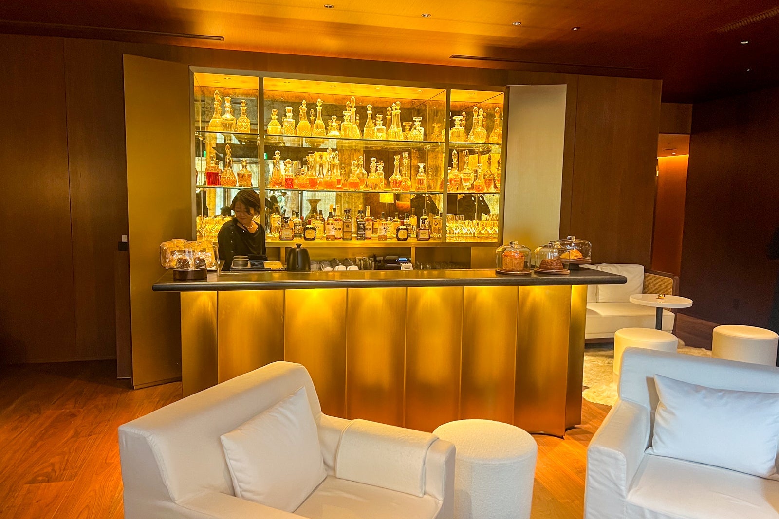 One of the first things you see when you walk into The Tokyo Edition, Ginza is the Lobby Bar. It was bustling day and night during our stay and provided fun people-watching opportunities. The gold-colored bar itself was filled with antique-looking decanters, and the room had a surfeit of armchairs and couches to lounge around in.