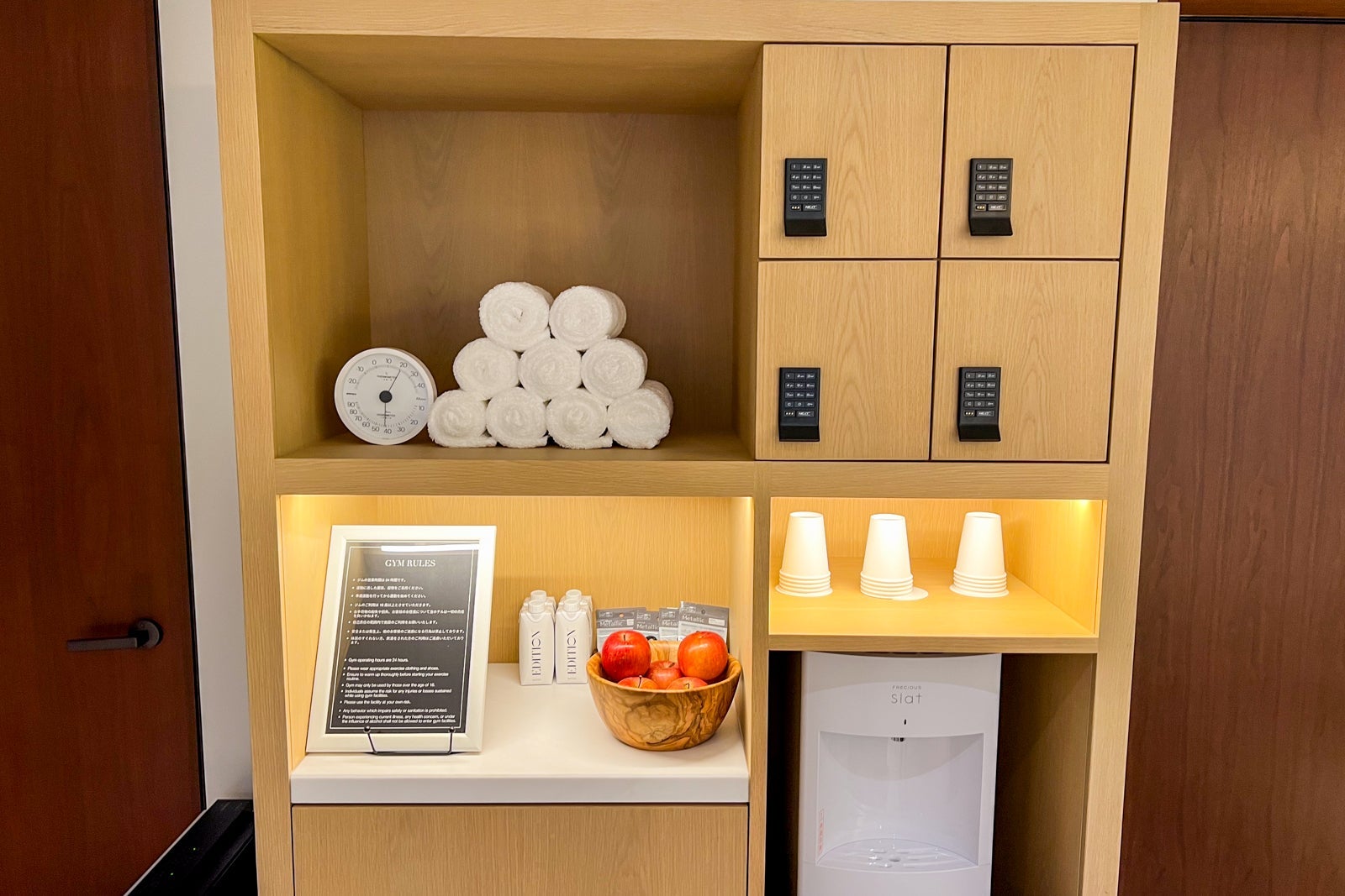 The Tokyo Edition, Ginza has a small gym on the third floor that is open 24 hours a day. You simply use your keycard to enter any time of the day or night, and it is stocked with complimentary Edition-branded boxed water, headphones and a bowl of apples.