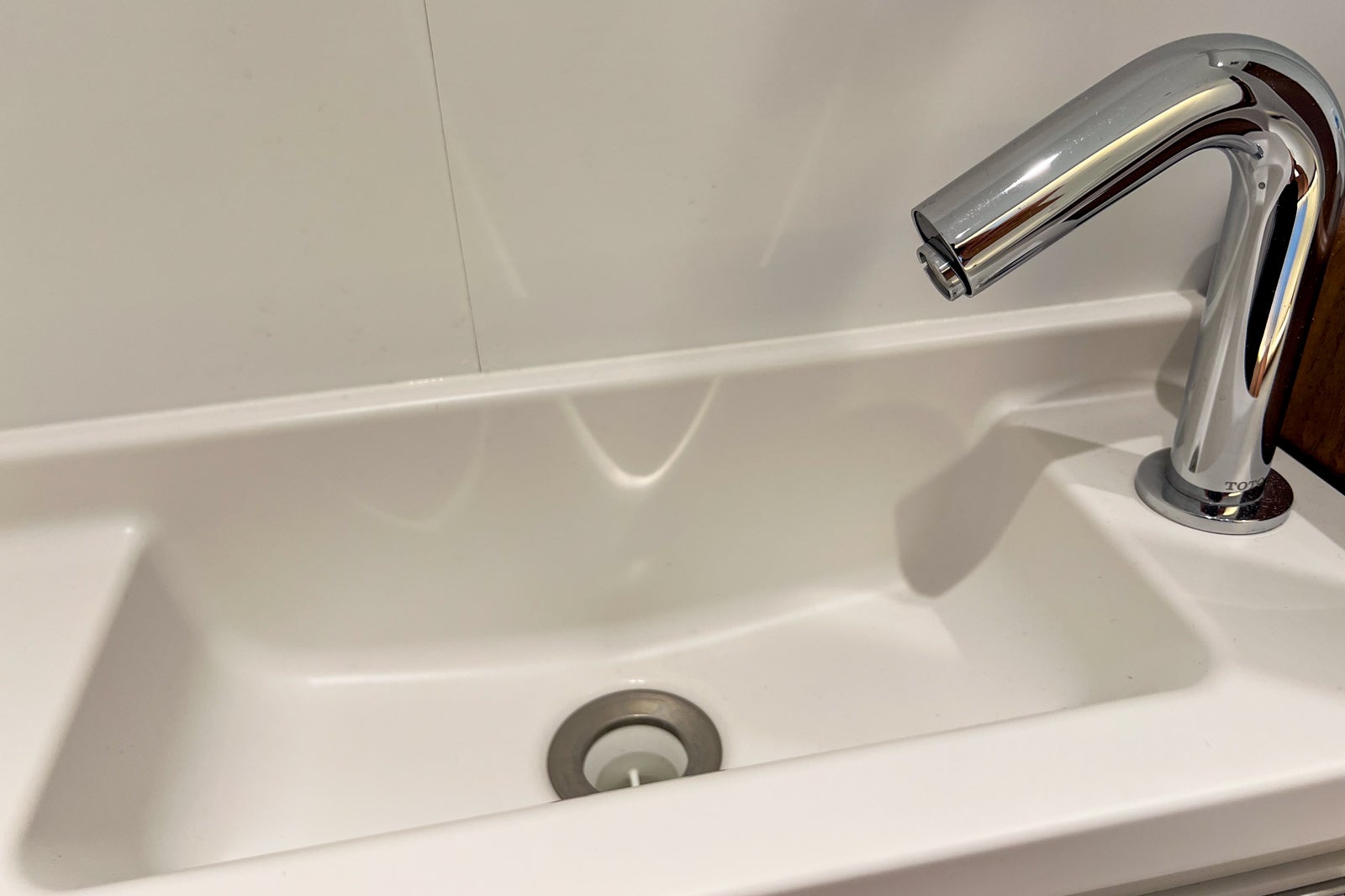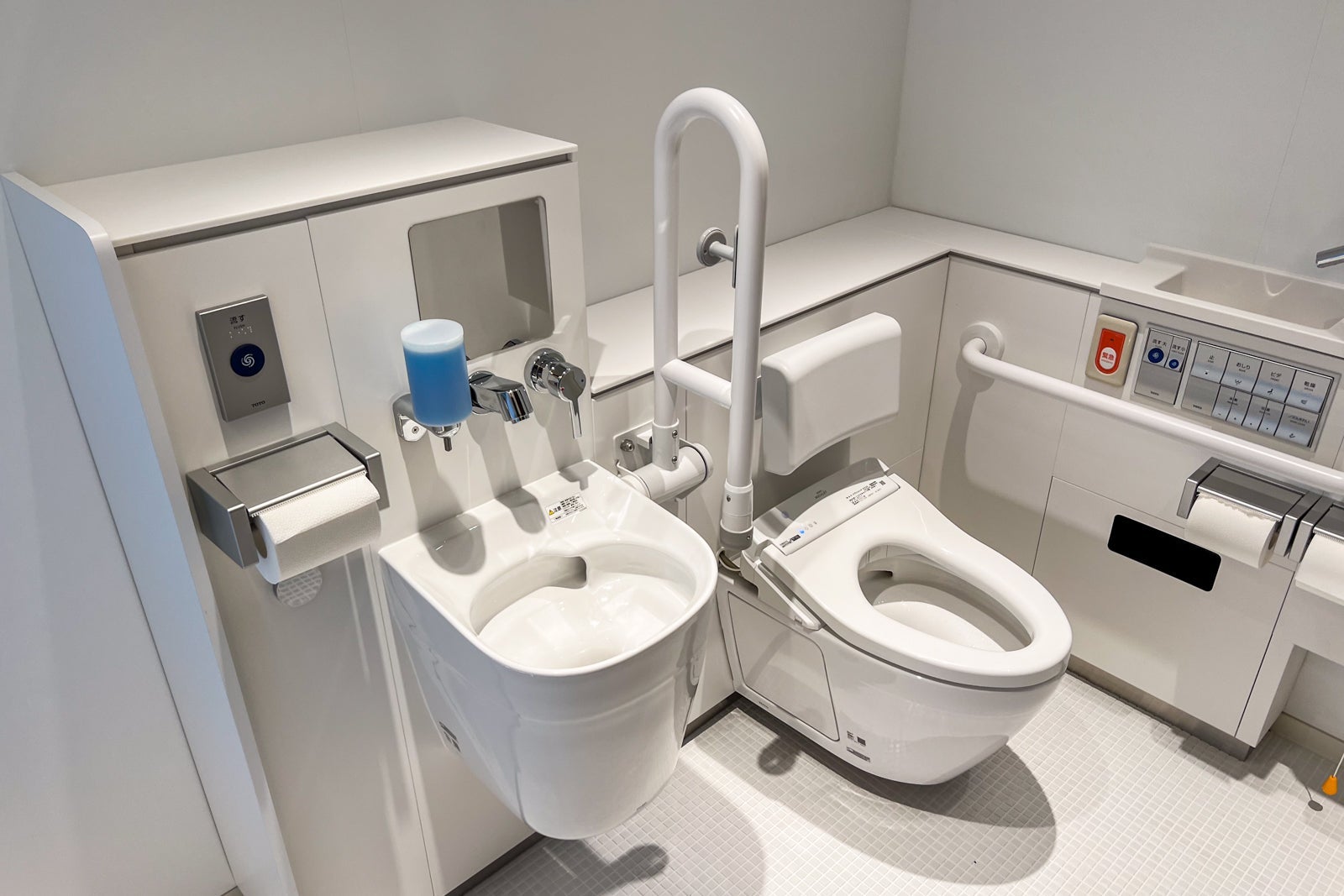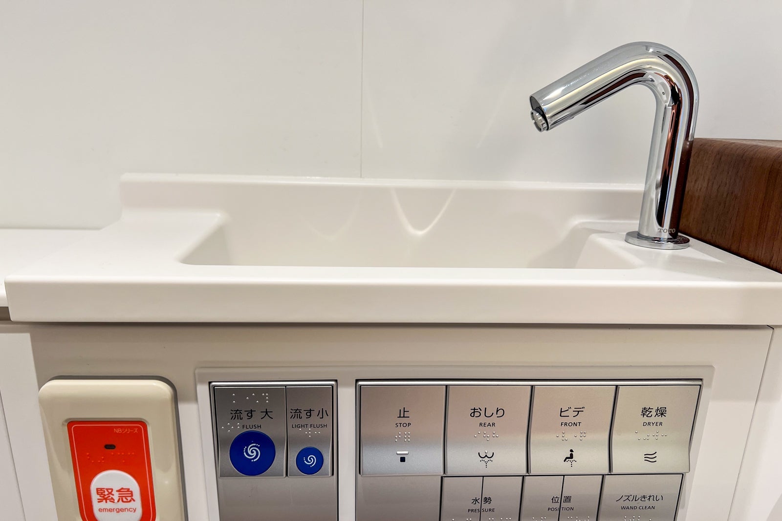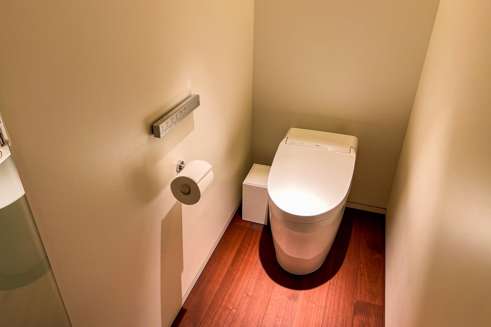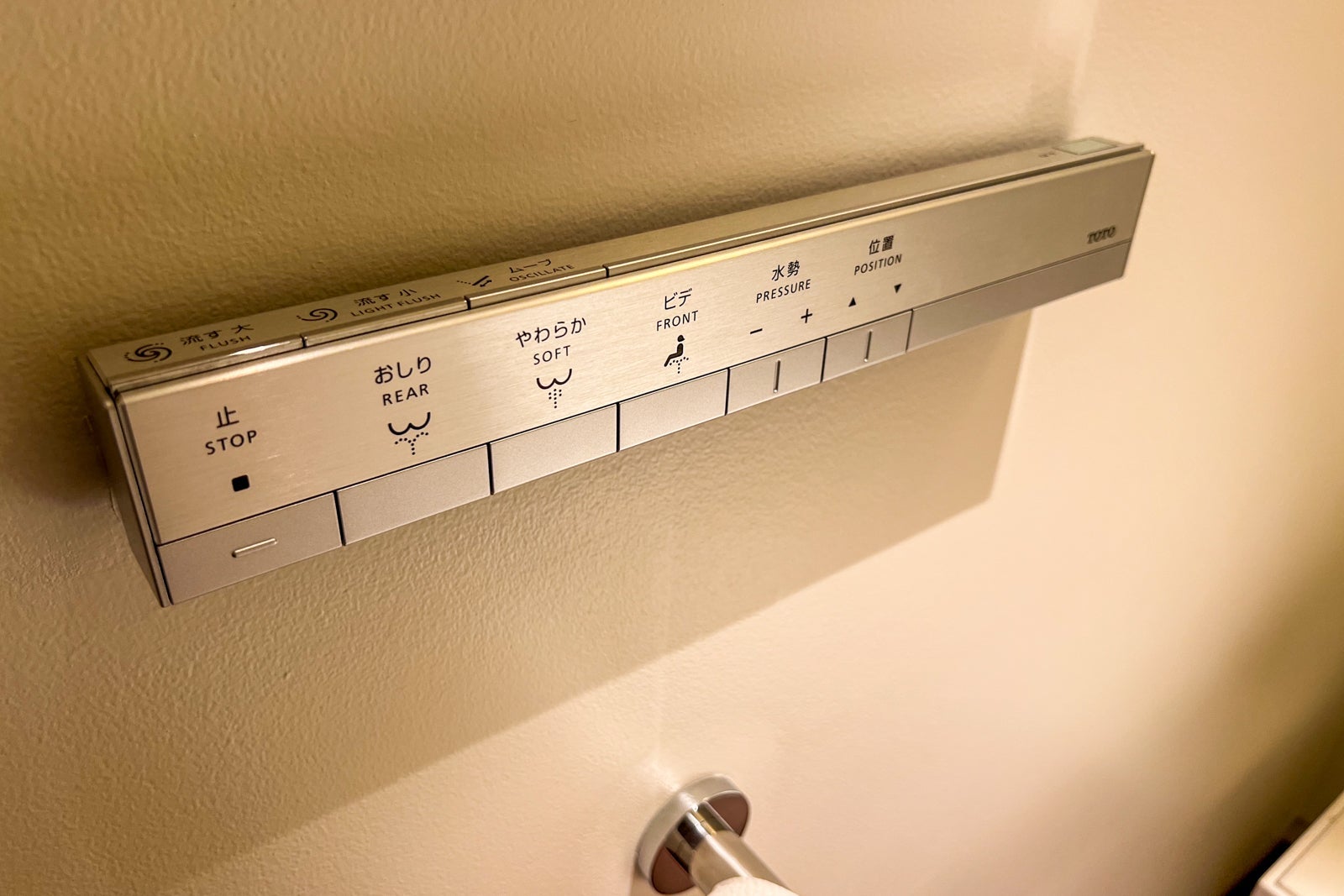 The water closet held a top-of-the-line Toto toilet with a heated seat and a bidet function, among other operations.