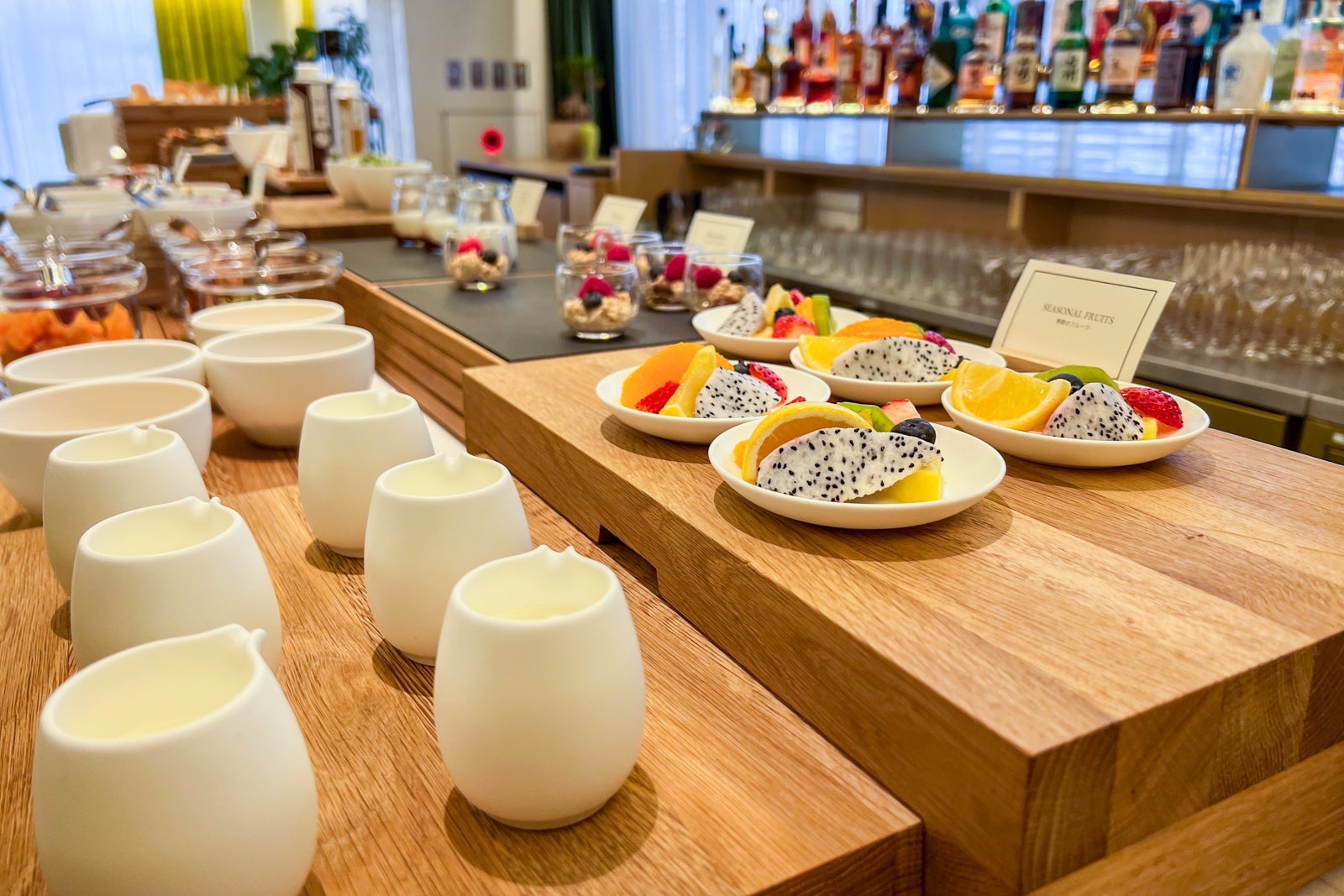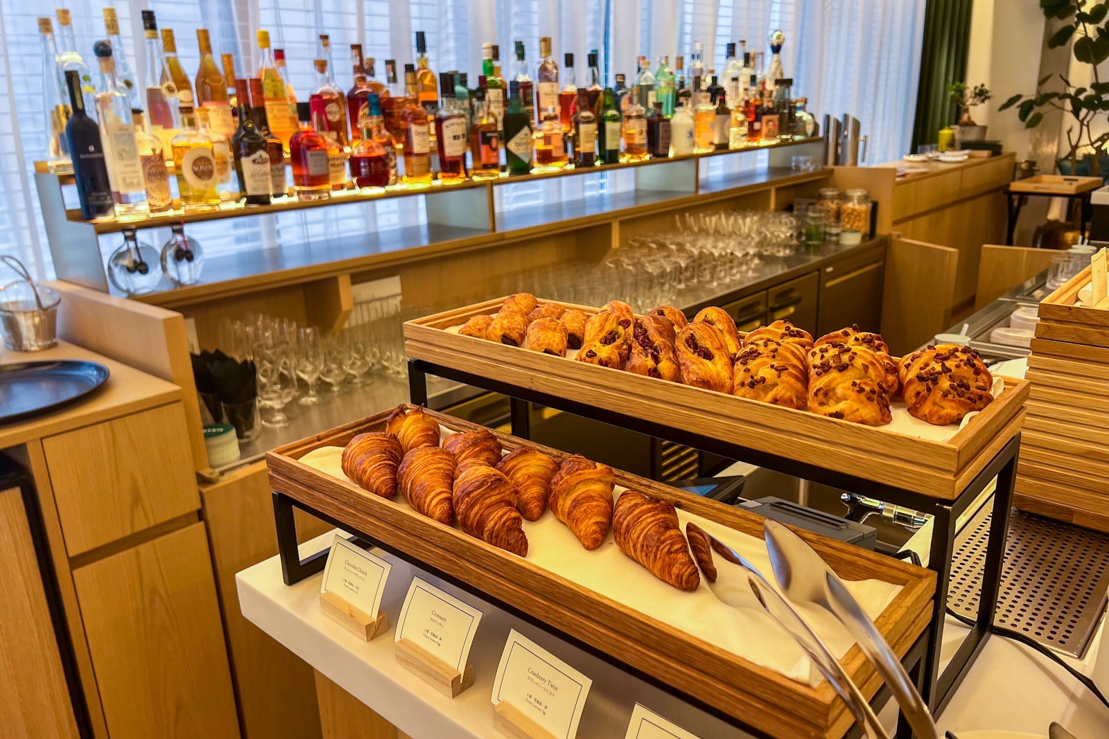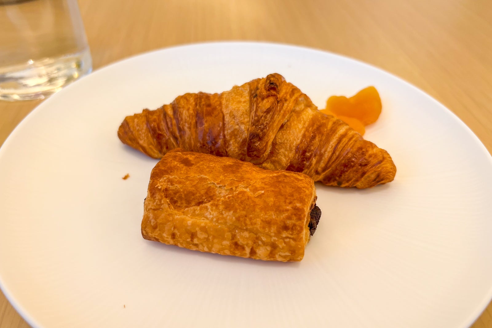 There are lots of options, including fresh fruit, yogurt, muesli, pain au chocolat and croissants.