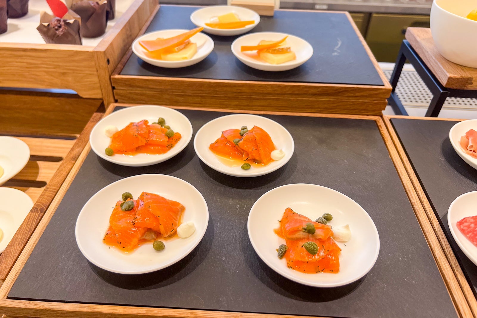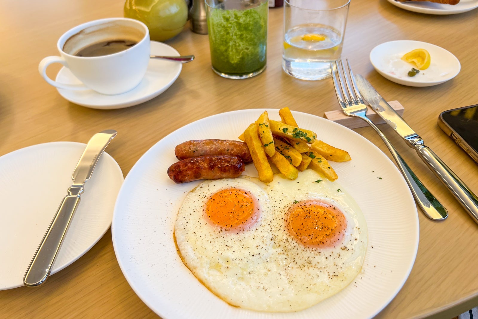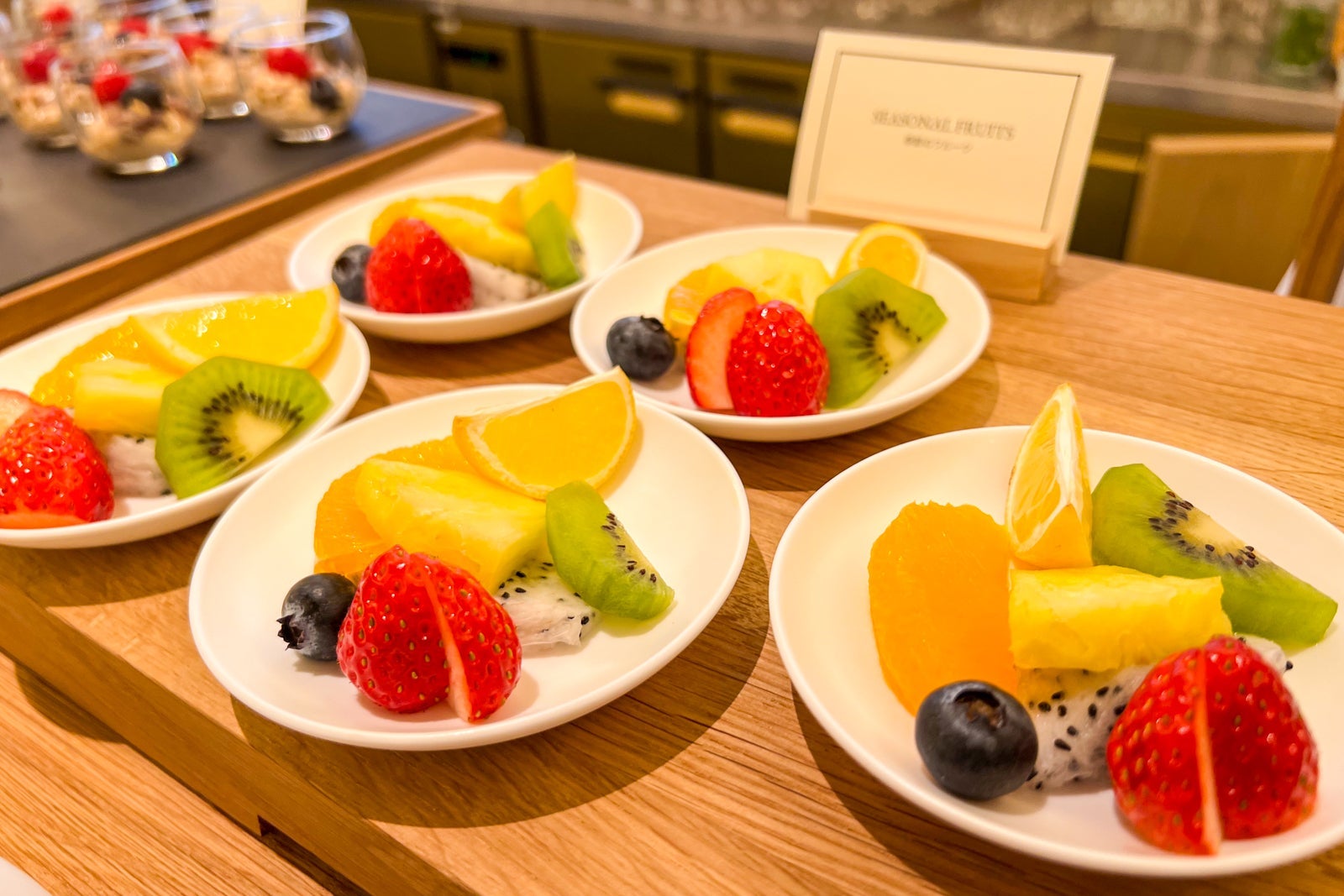 There are lots of options, including fresh fruit, yogurt, muesli, pain au chocolat and croissants.