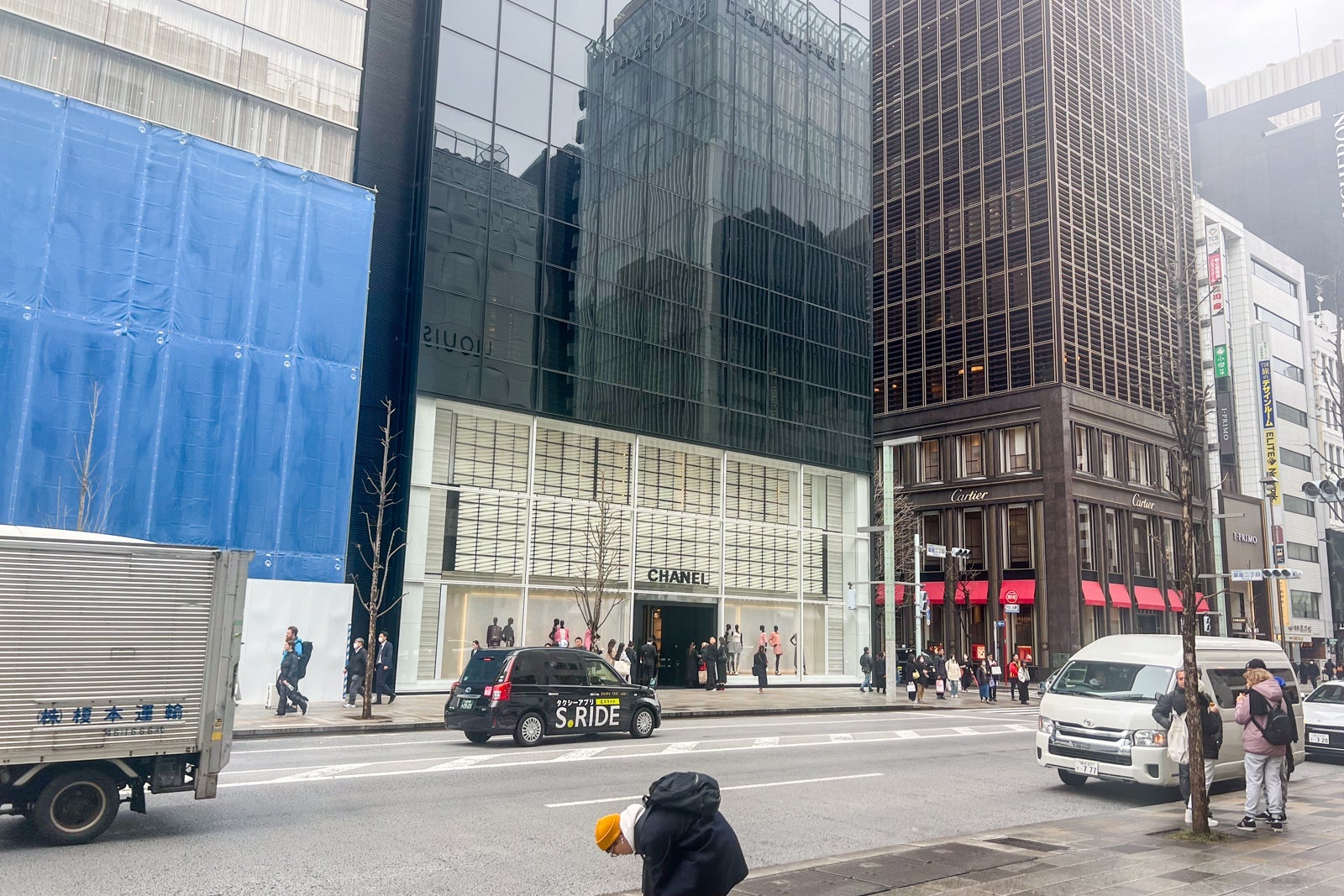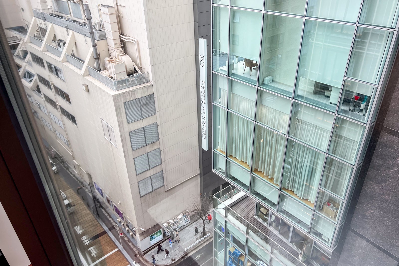- The views of the nearby shops of Ginza, including an Adidas store and the Matsuya Ginza department store, as well as a cluster of office buildings, were not exciting.