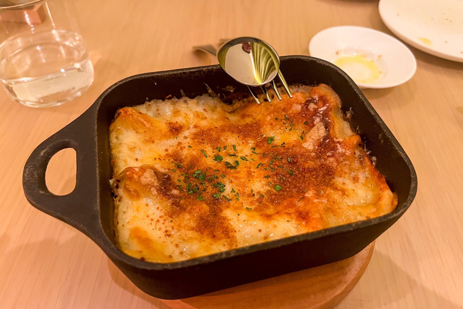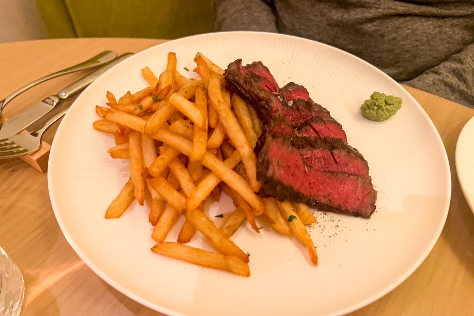 For dinner, we tried beef and potato casserole ($27), burrata mousse ($27), steak frites ($65), endive and blue cheese salad ($23.50), and the slow-roasted pork loin ($34). All the food was delicious, though (unsurprisingly) heavy.