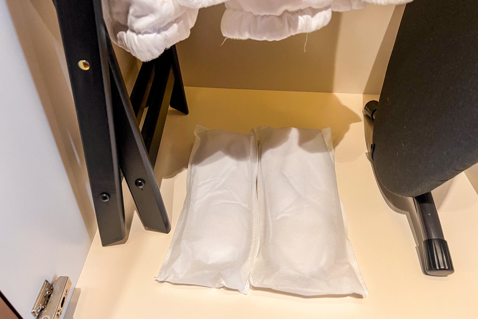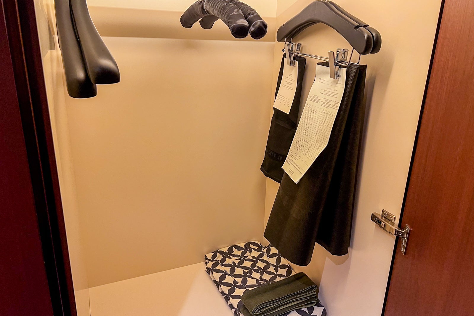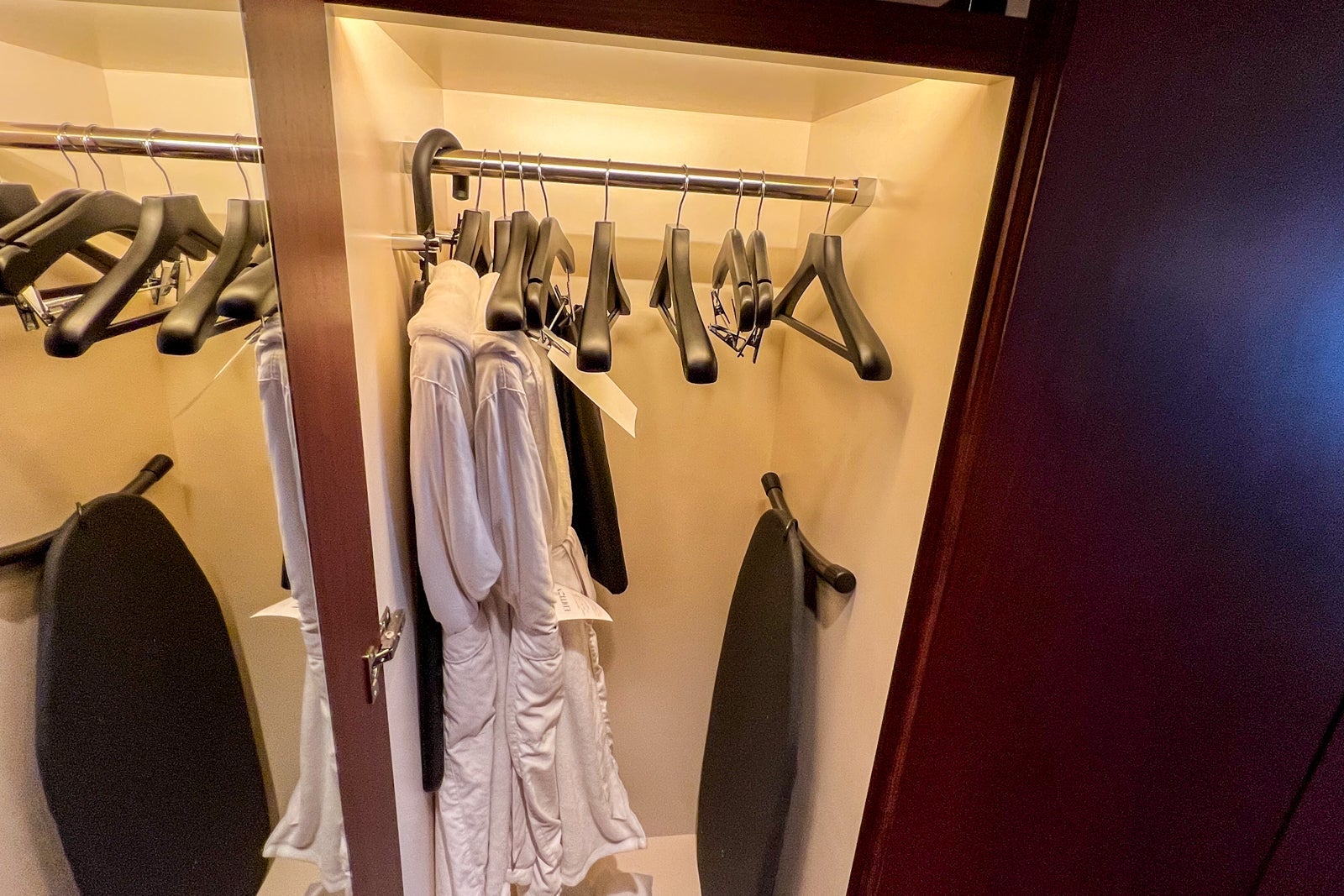 The closet held kimono-style robes, slippers, an iron and ironing board, and had enough space to unpack for a few days, though if you're bringing larger suitcases, you might be strapped for room.