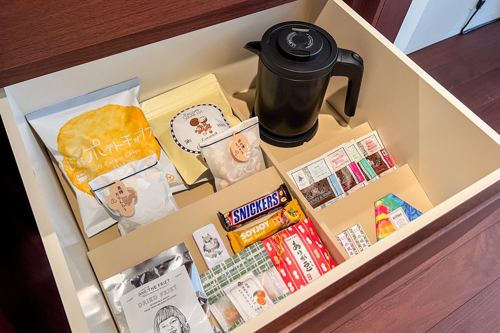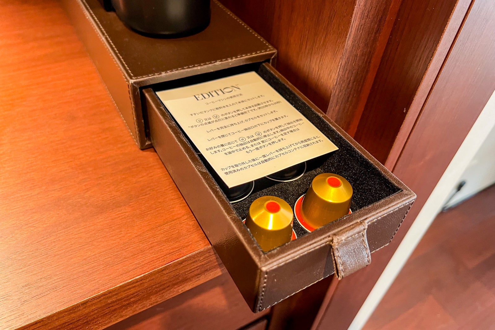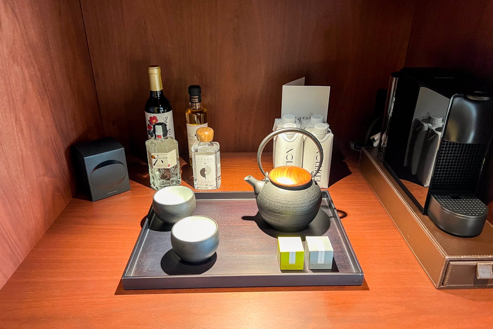 The Tokyo Edition, Ginza provides Nespresso machines in every room, and mine was kept well stocked with plenty of pods during my stay. There was also a tea set with sachets from Harney & Sons and a local brand called Sayuri, as well as a selection of spirits including craft Japanese gin and vodka by Nanbu Bijin.