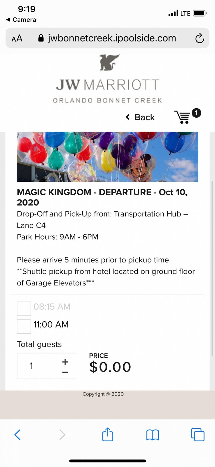 Part of the resort fee inclusions are shuttle bus rides to the Disney theme parks and Disney Springs. Right now, the schedule is decreased from what it may eventually be due to COVID-19. On my stay, there were two departures in each direction per day to the parks. You could easily reserve your preferred departure time on the hotel's website, which you can access by scanning a QR code.