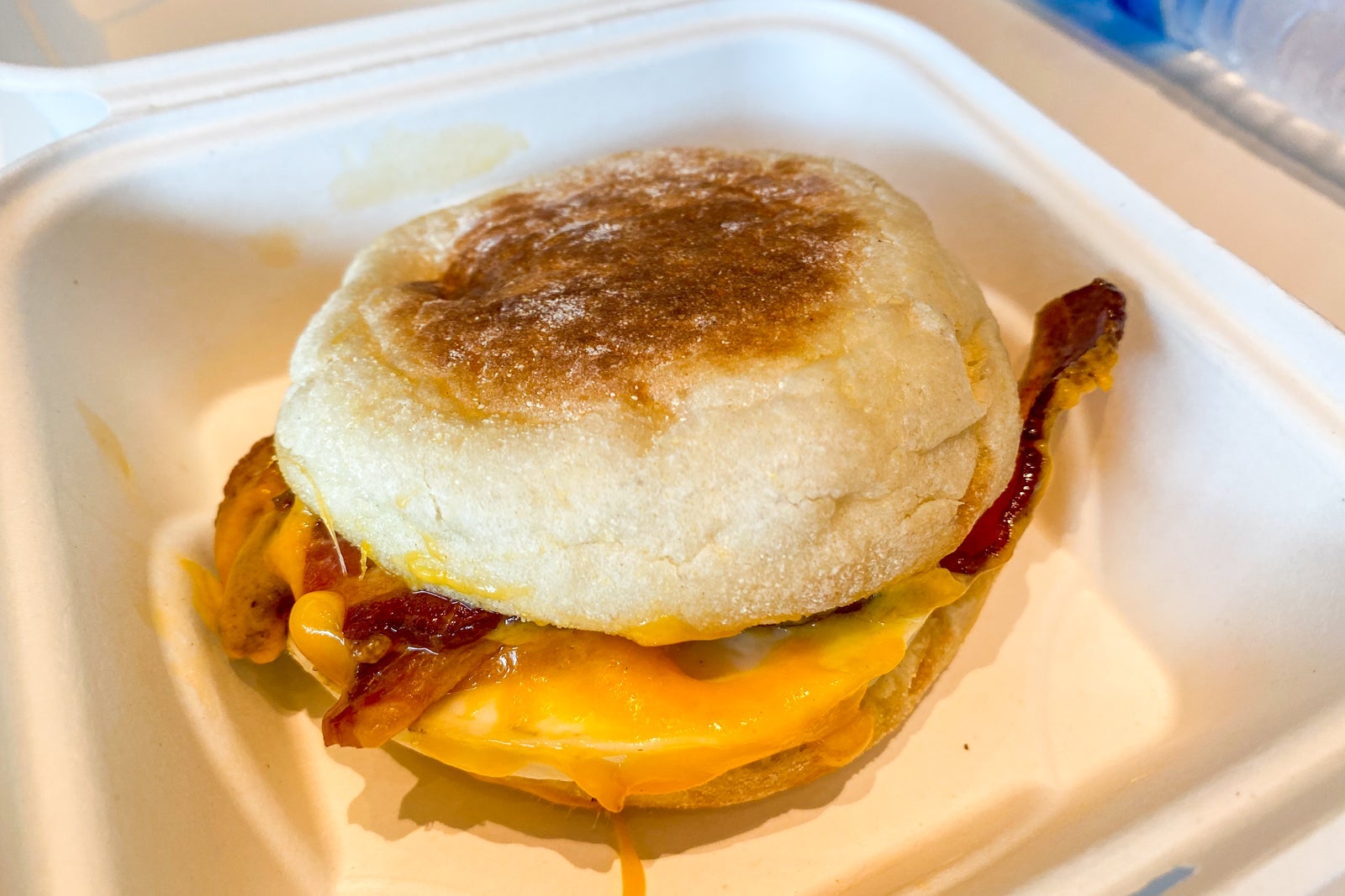 The breakfast sandwich alone was $14 pre-tax or tip, so I'd argue that a $12 credit per person isn't quite enough given prices. The $6 muffins apparently hit the spot though and some credit is better than no credit.