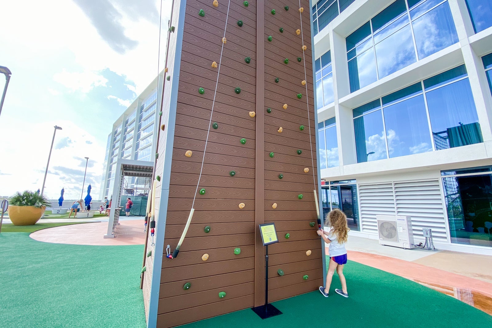 In that same location, there are also some outdoor games, a jungle gym and a rock-climbing wall. When evening fireworks eventually return at Disney World, I'd bet this is a great viewing spot.