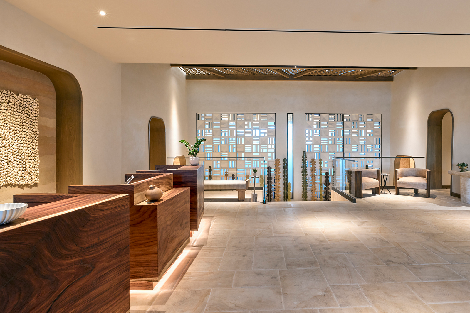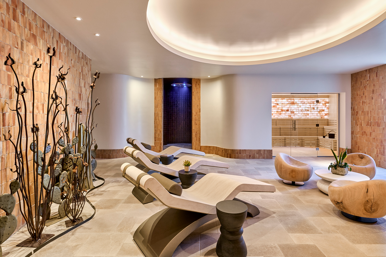 Rooted in its desert surroundings, the spa experience highlights desert-inspired treatments crafted with indigenous ingredients such as adobe clay, prickly pear and agave nectar. These locally influenced therapies connect guests to the natural elements of the region while promoting holistic wellness. The art and architecture throughout the updated space — limestone and travertine, a soothing desert palette and cacti sculptures — also complement the calming atmosphere.