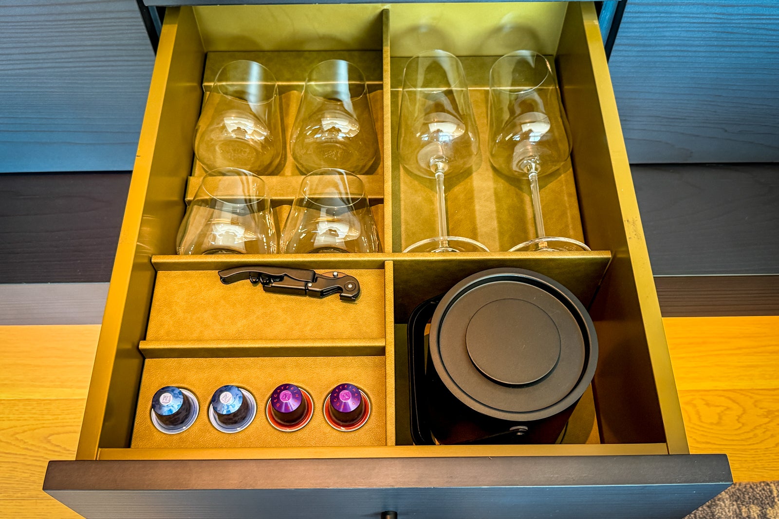 There was also a well-stocked minibar with spirits, juice, beer, sake and soda, plus snacks, a Nespresso machine and plenty of Japanese teas to choose from.