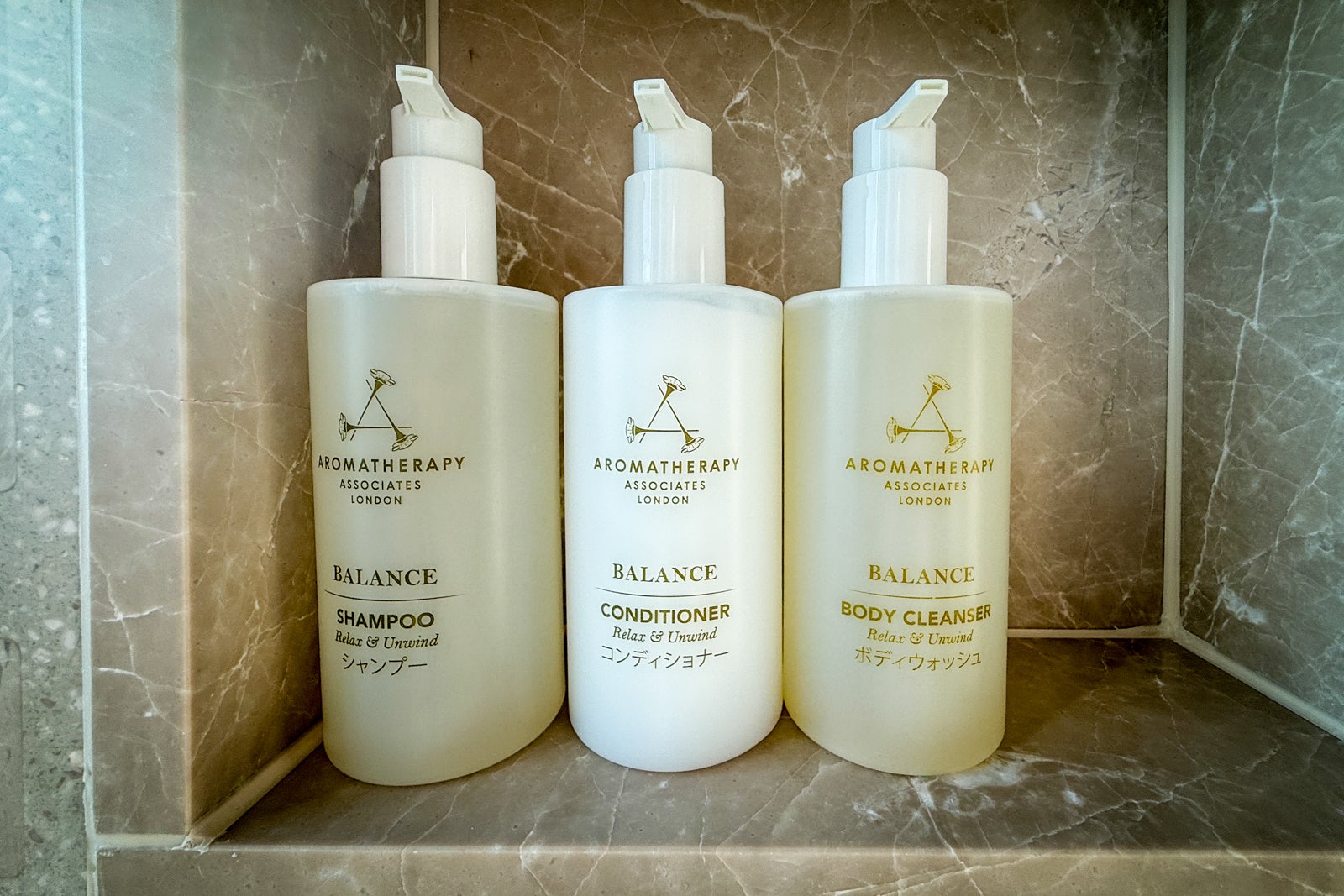 In the bathroom, I found an assortment of high-end amenities, like Aromatherapy Associates London bath products, and one of those fancy Japanese toilets with more buttons than you know what to do with.