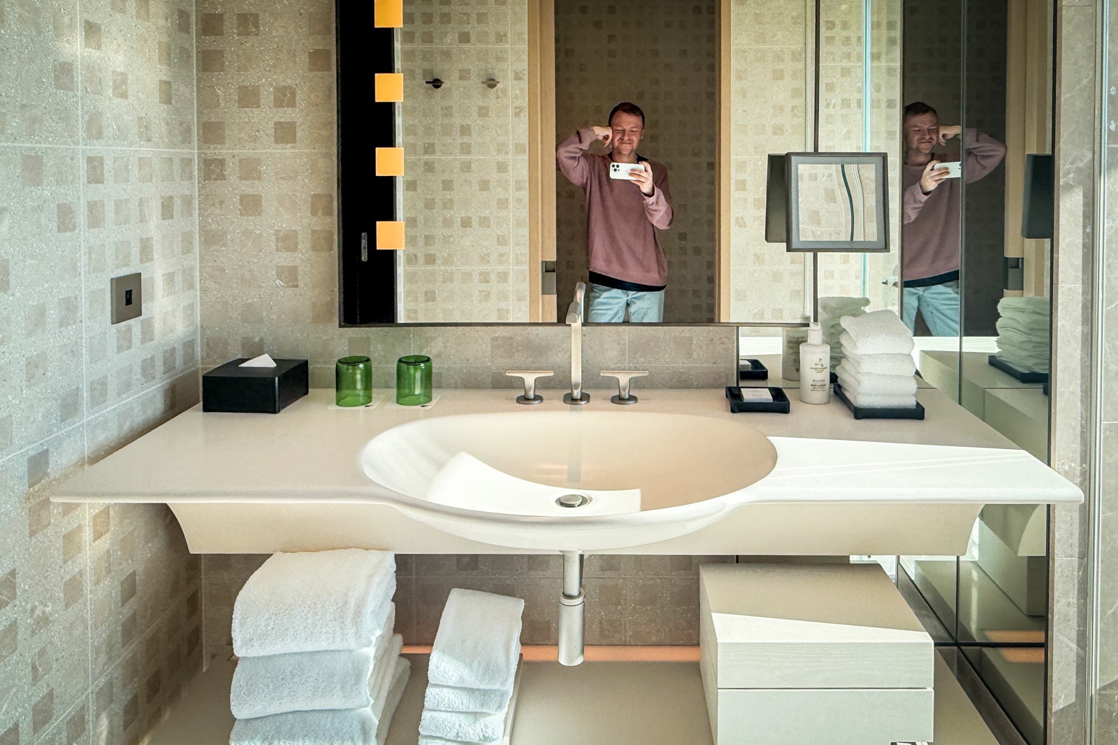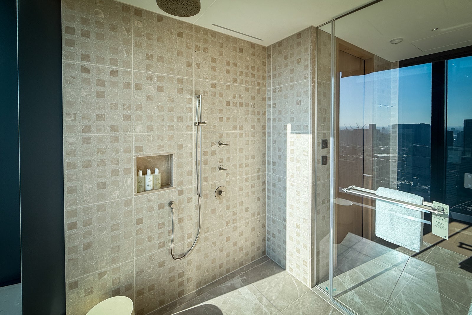 The real star of my guest room was the bathroom, where a large soaking tub in its own entirely-glass room filled with sunlight during the day and offered twinkling views of the Tokyo skyline at night. After a long soak, a rainfall shower was ideal for a rinse.