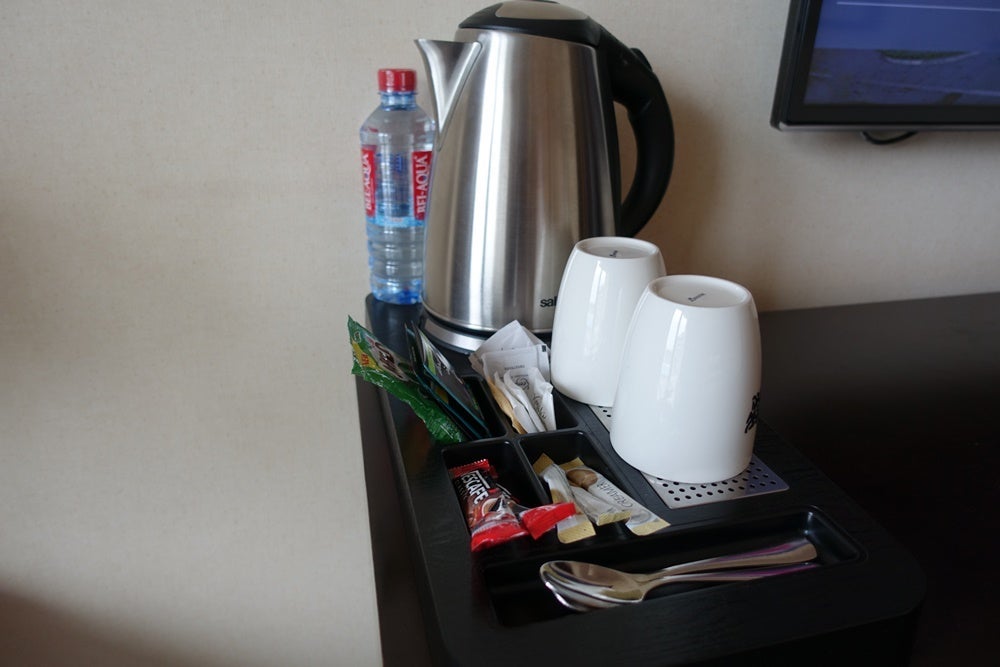 Daily water was provided, and I was happy to see a kettle with teabags and packs of instant coffee too. It wasn't a Nespresso machine, but it would do for my four-night stay.