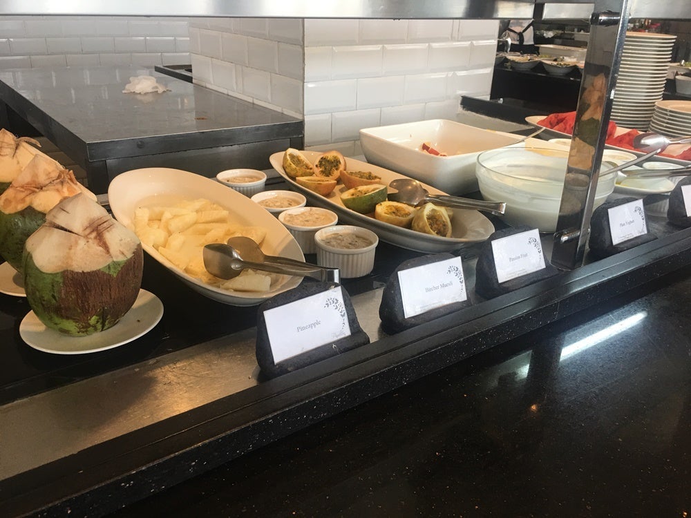 I mostly stuck to the eggs, breads, hash browns and fruit, although one day they offered roti with curry, which was yummy. Fresh coconuts were also available at the breakfast buffet.
