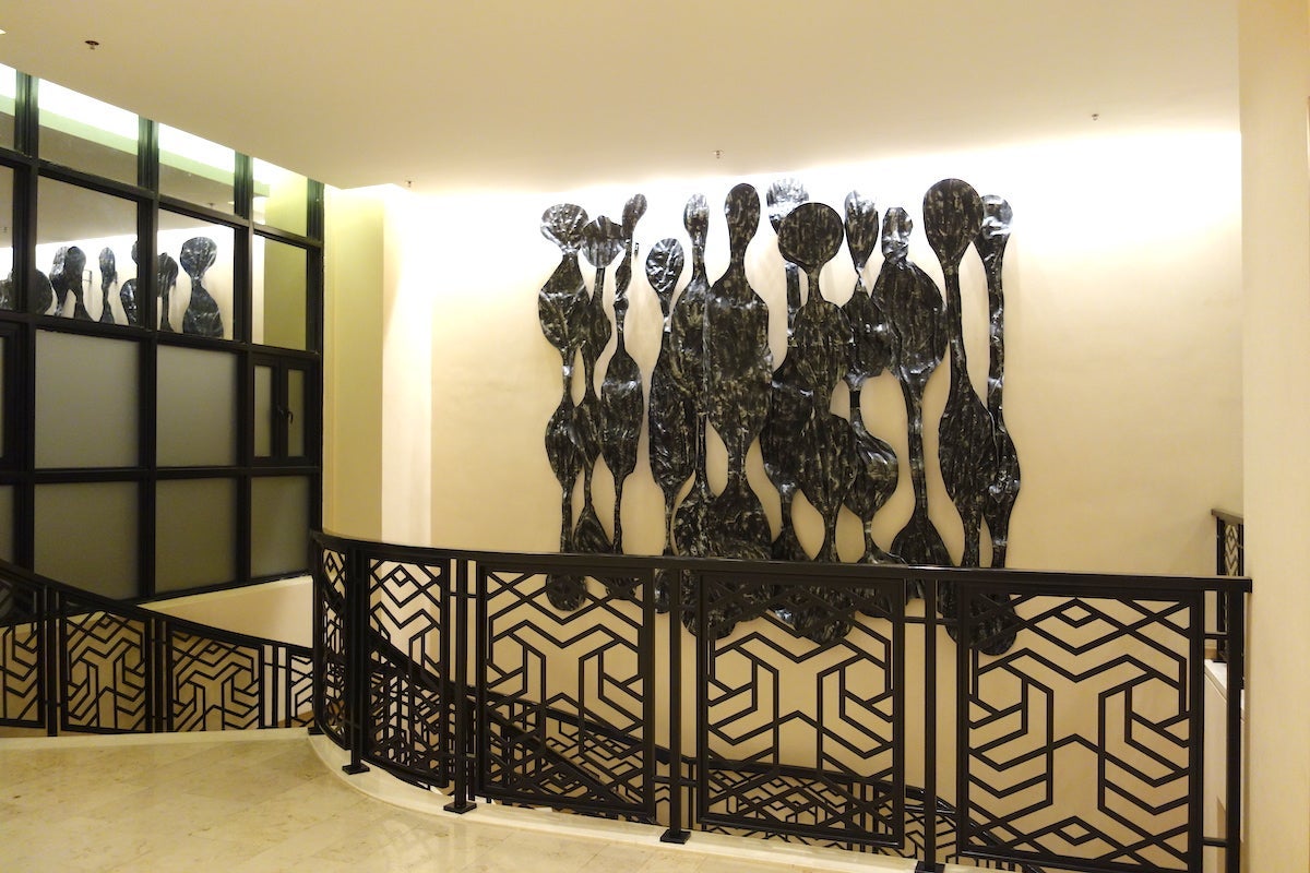 What immediately struck me was the size of the lobby. It was enormous and ran nearly the entire length of the building. At the back, there were two sweeping staircases to the restaurant on the level below.