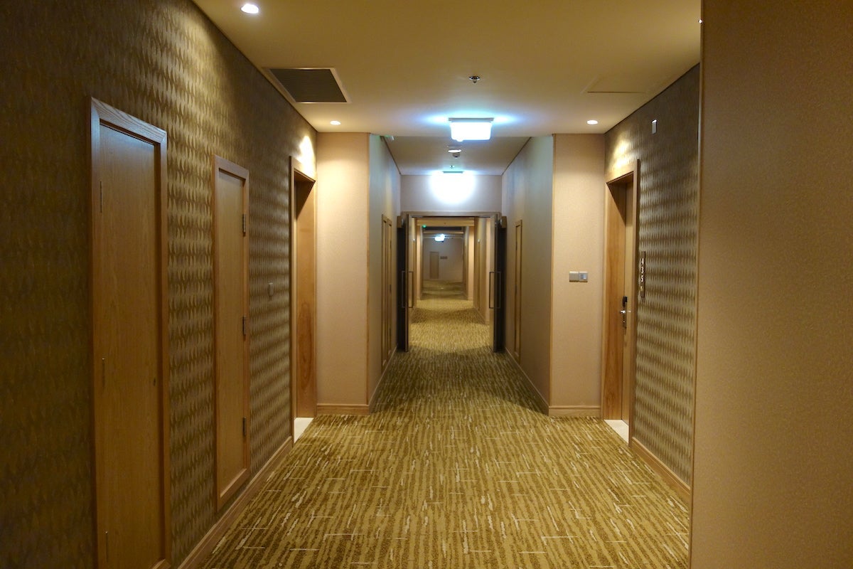 To get into the hotel, we had to first pass through a security checkpoint at the driveway entrance. Guards checked the vehicle I was in and verified my name before waving us in.