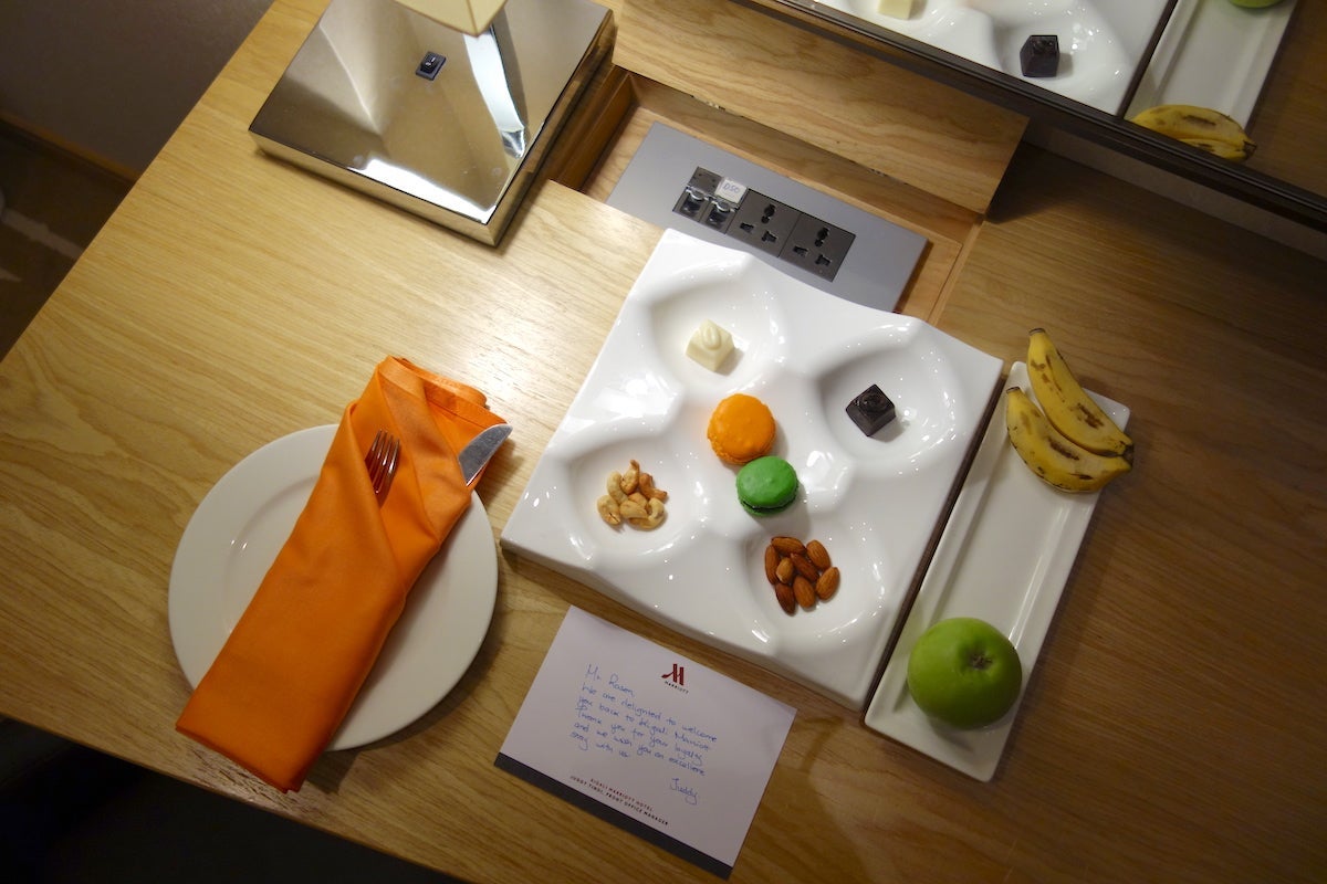 I was also happy to find a welcome amenity including fruit, macarons, nuts and chocolate truffles, which made for a nice nighttime snack.