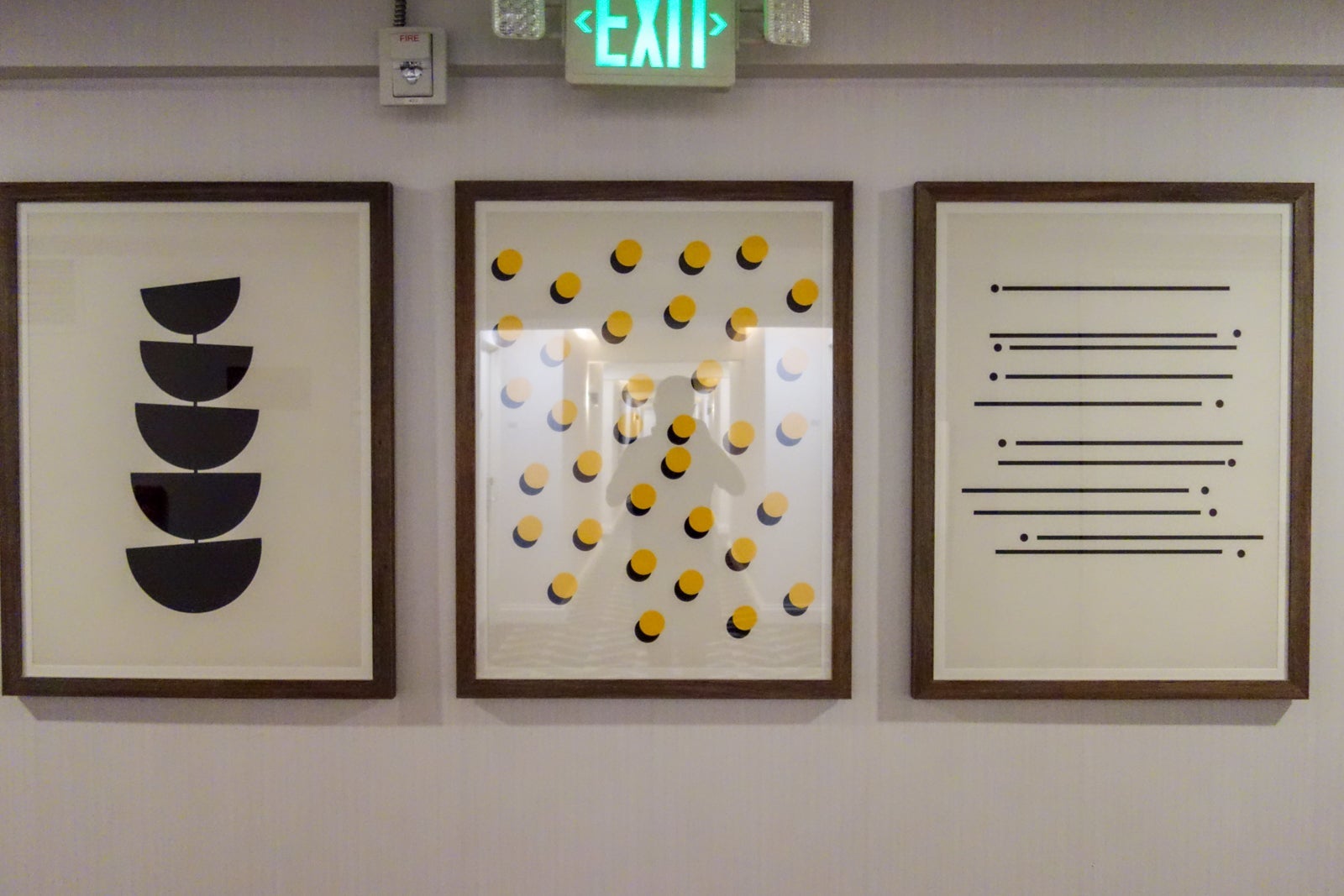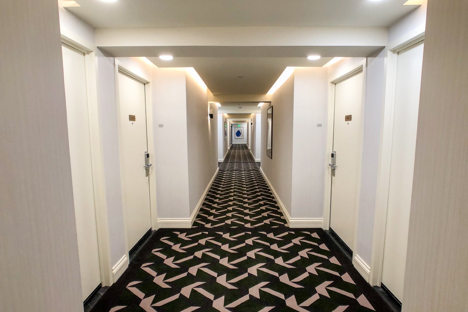 The hallways themselves were brightly lit with semicircular fixtures that were painted half-black and half-white, while the floors were carpeted in a geometric pattern that resembled houndstooth.