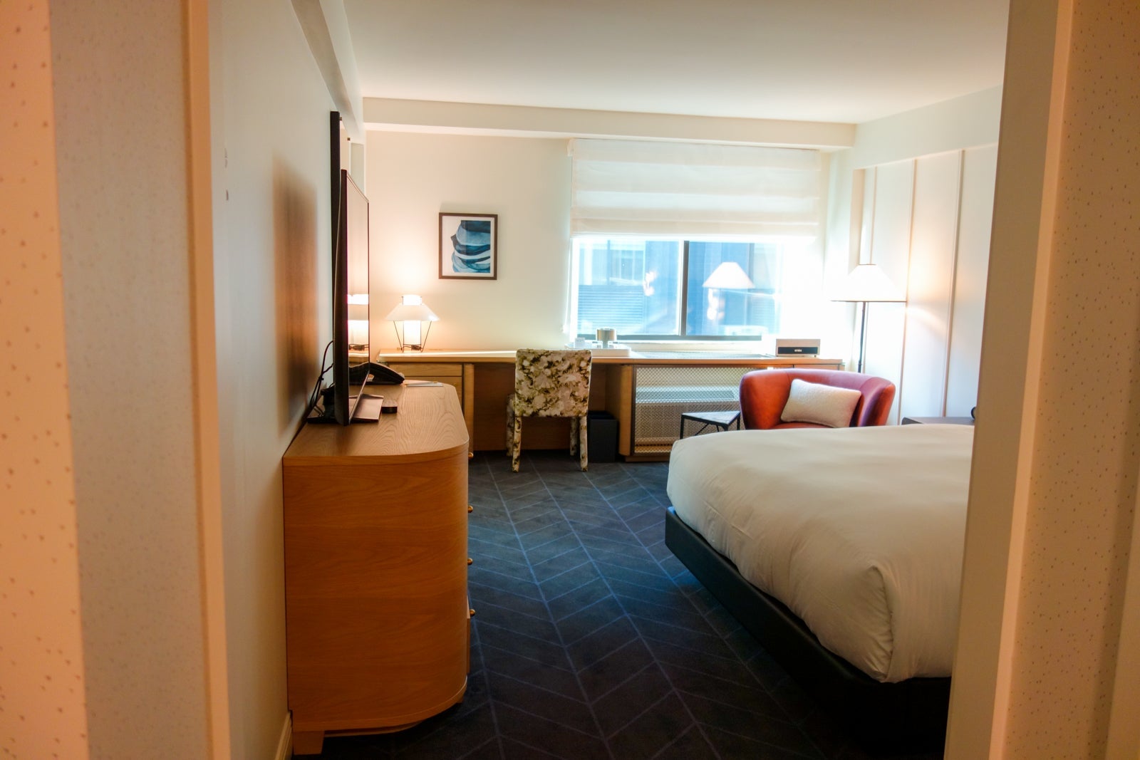 All in all, the room was large, nicely arranged and looked very contemporary if not entirely remarkable. However, the colors, textures and furnishings – which were overseen by Kara Mann and Arcsine Architects – all felt fresh and upscale.