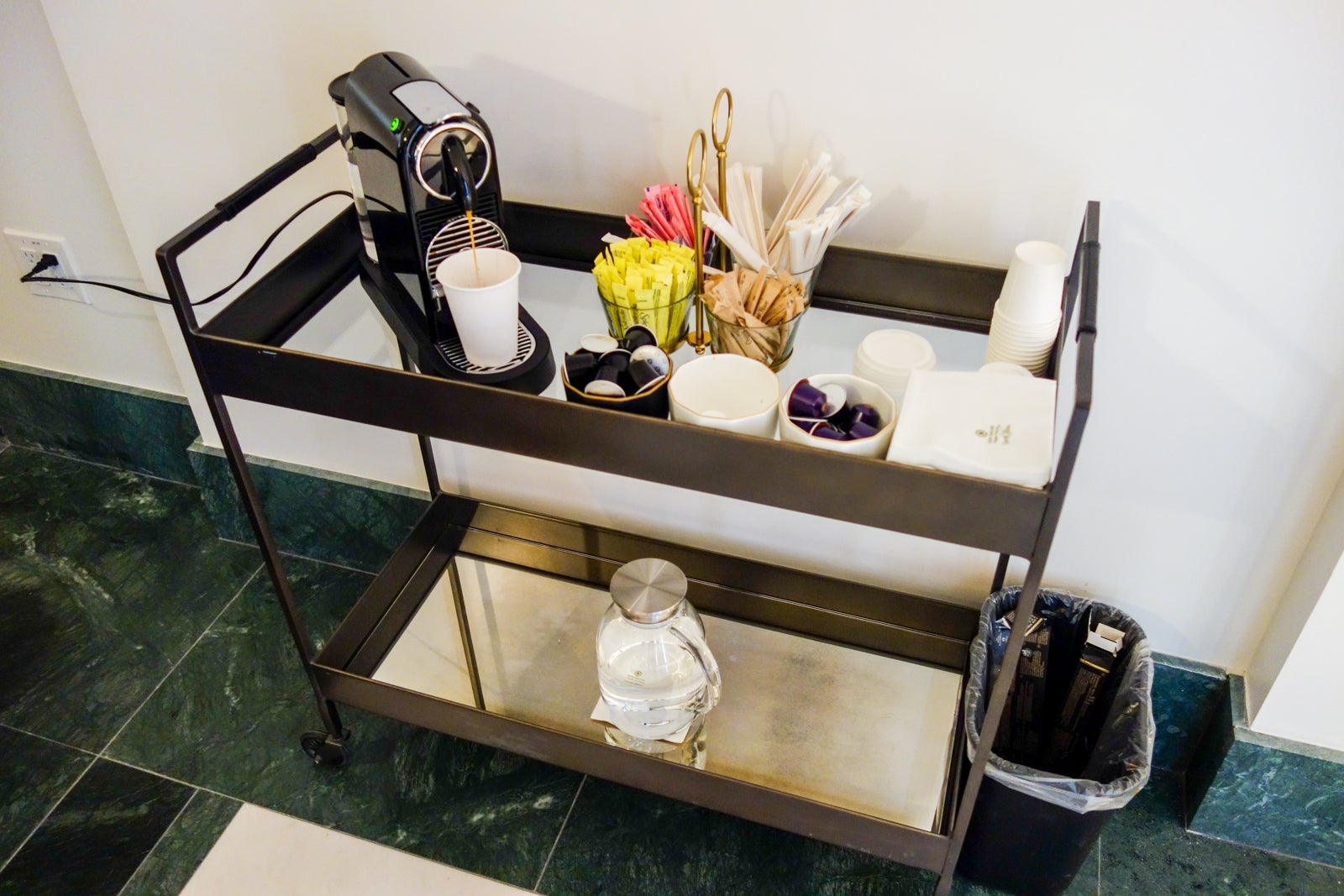 Kimpton usually offers complimentary coffee and tea service in the mornings. However, all that was available during our stay was a small Keurig that could brew a single small cup at a time. It was manned by one of the front desk agents, so it meant a bit of a wait if there was even just a single person in front of you. I can't imagine how long it would have taken if the hotel had been busy.