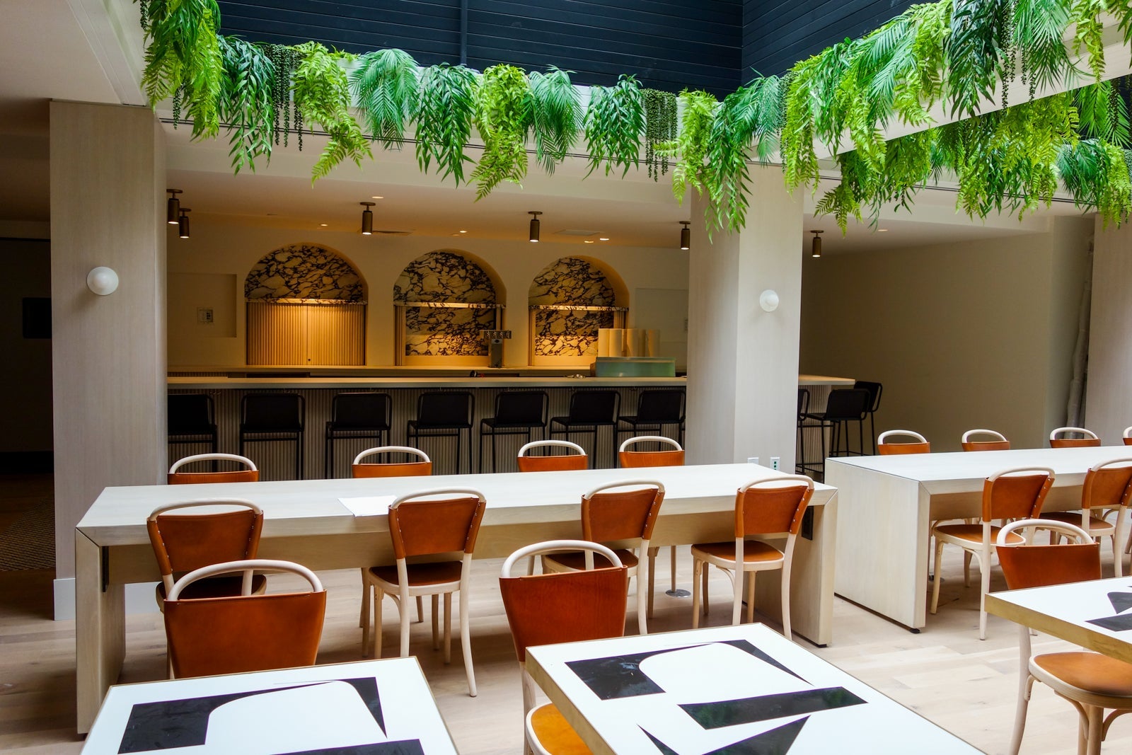 The Kimpton Alton will eventually be home to a Filipino-Californian restaurant by San Francisco-based chef Francis Ang (his other restaurant is called Pinoy Heritage) that is expected to open sometime this summer. Named Abacá, it will be just across from reception in a ground-floor atrium space with a huge skylight and overhanging plants. Based on what I saw, there will be some individual two-tops as well as communal tables and a long bar at the back.