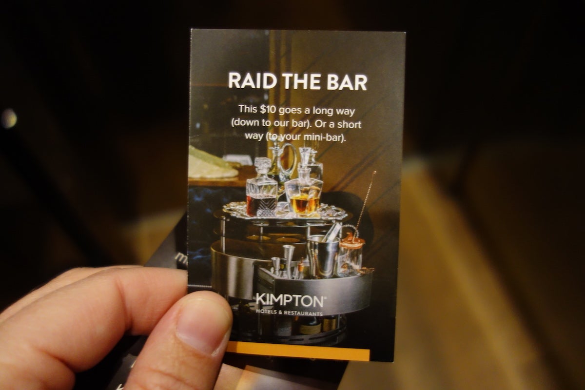The agent behind the desk immediately thanked me for my IHG Platinum status and gave me a card that entitled me to $10 off a charge at the hotel bar or my minibar.