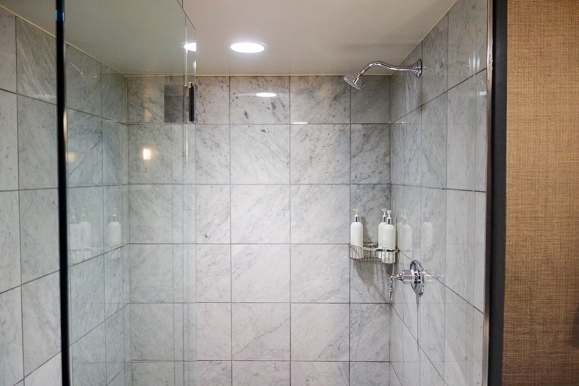 Now I'm going to nitpick. I thought the shower was terrible. Sure, it was large and clean, but the water pressure was almost nonexistent. There was just a single handle with which you could adjust the water temperature (which was very variable, so beware), but not the pressure. You could only turn the water on and off by twisting the handle, and the pressure was mediocre at best.