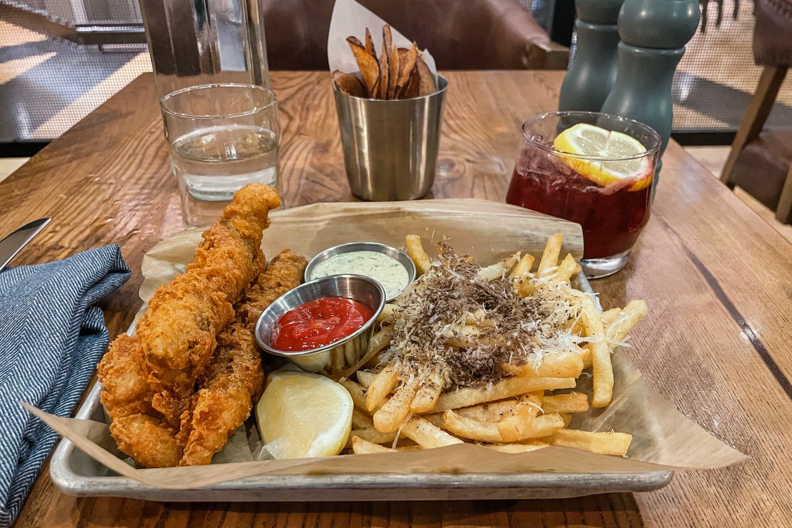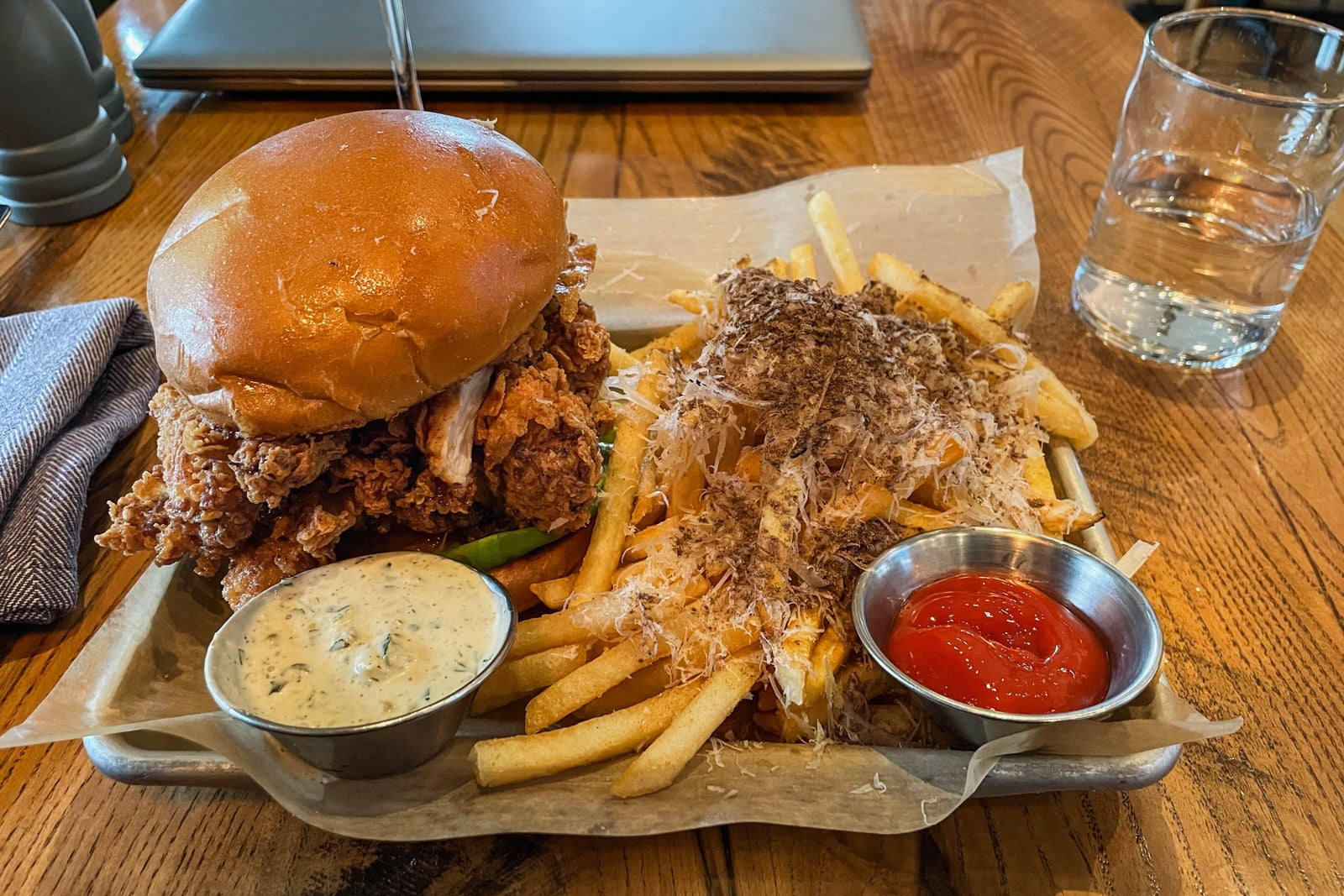 For dinner I had the fish-and-chips, priced at a fairly reasonable $26. The fish was nicely battered and well-seasoned. For lunch, I opted for a fried chicken sandwich for $16. It was a fairly run-of-the-mill chicken sandwich, not memorable. It gave me another chance to eat their truffle fries, however, and for that I'm appreciative.